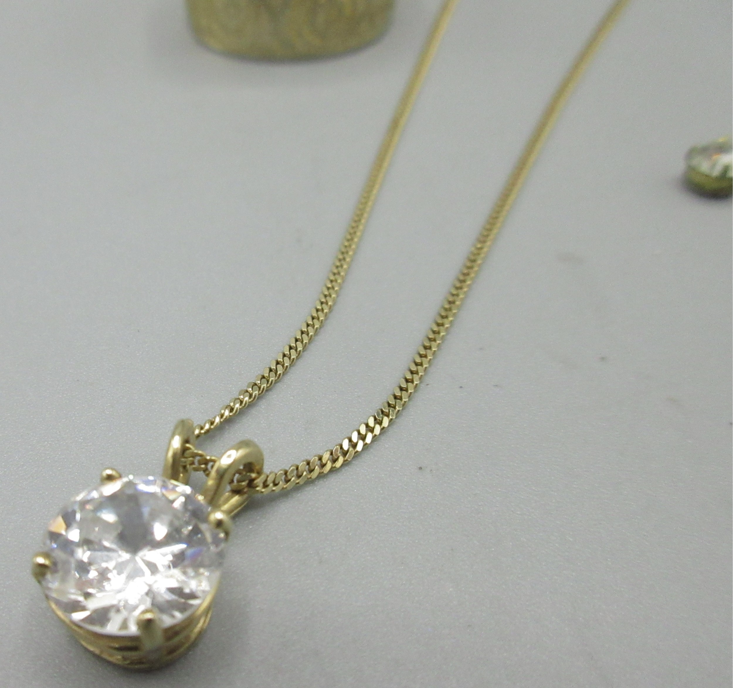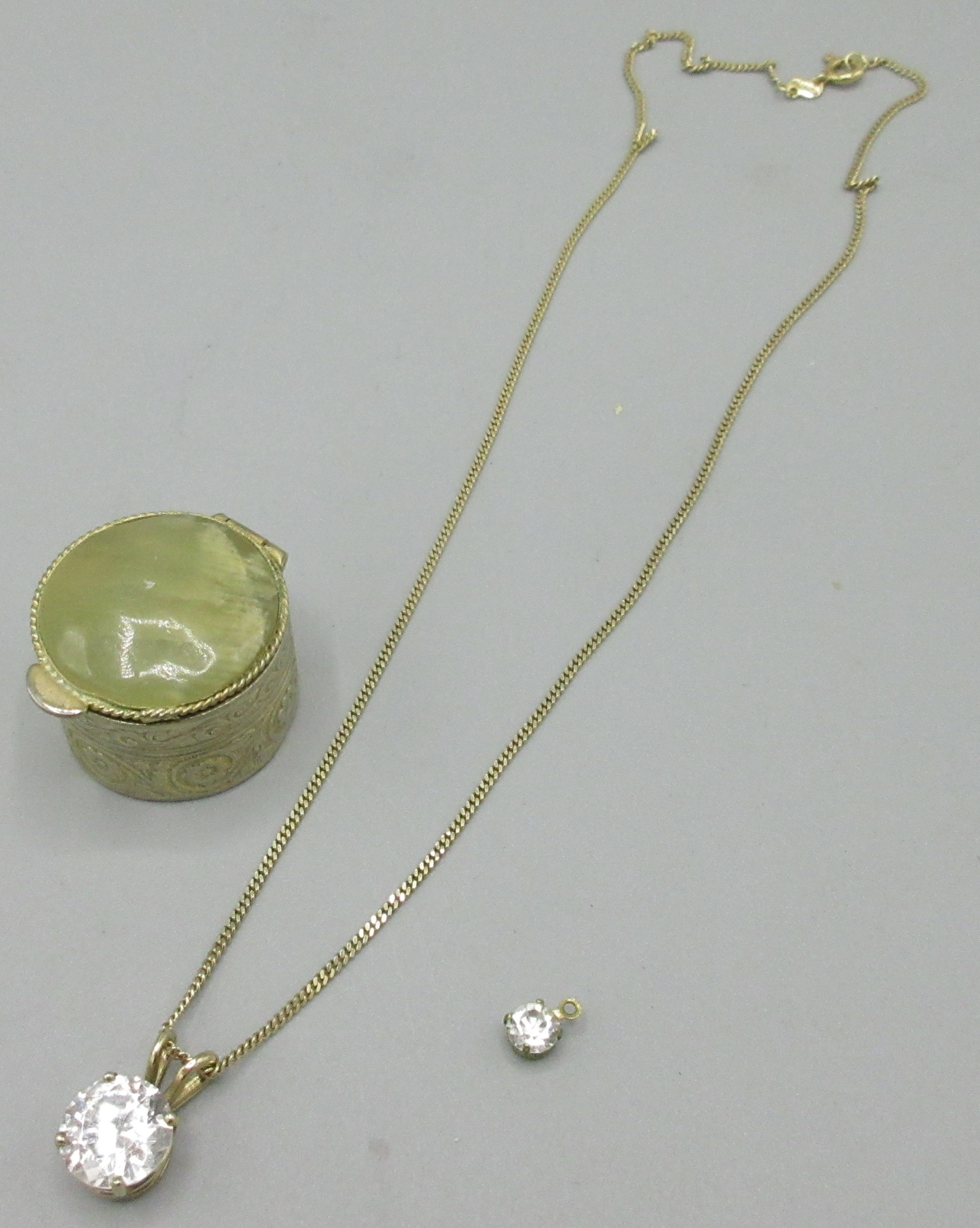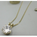 14ct yellow gold chain necklace (2.6g) with 9ct yellow gold pendant set with large clear stone (2.3g) L41.5cm