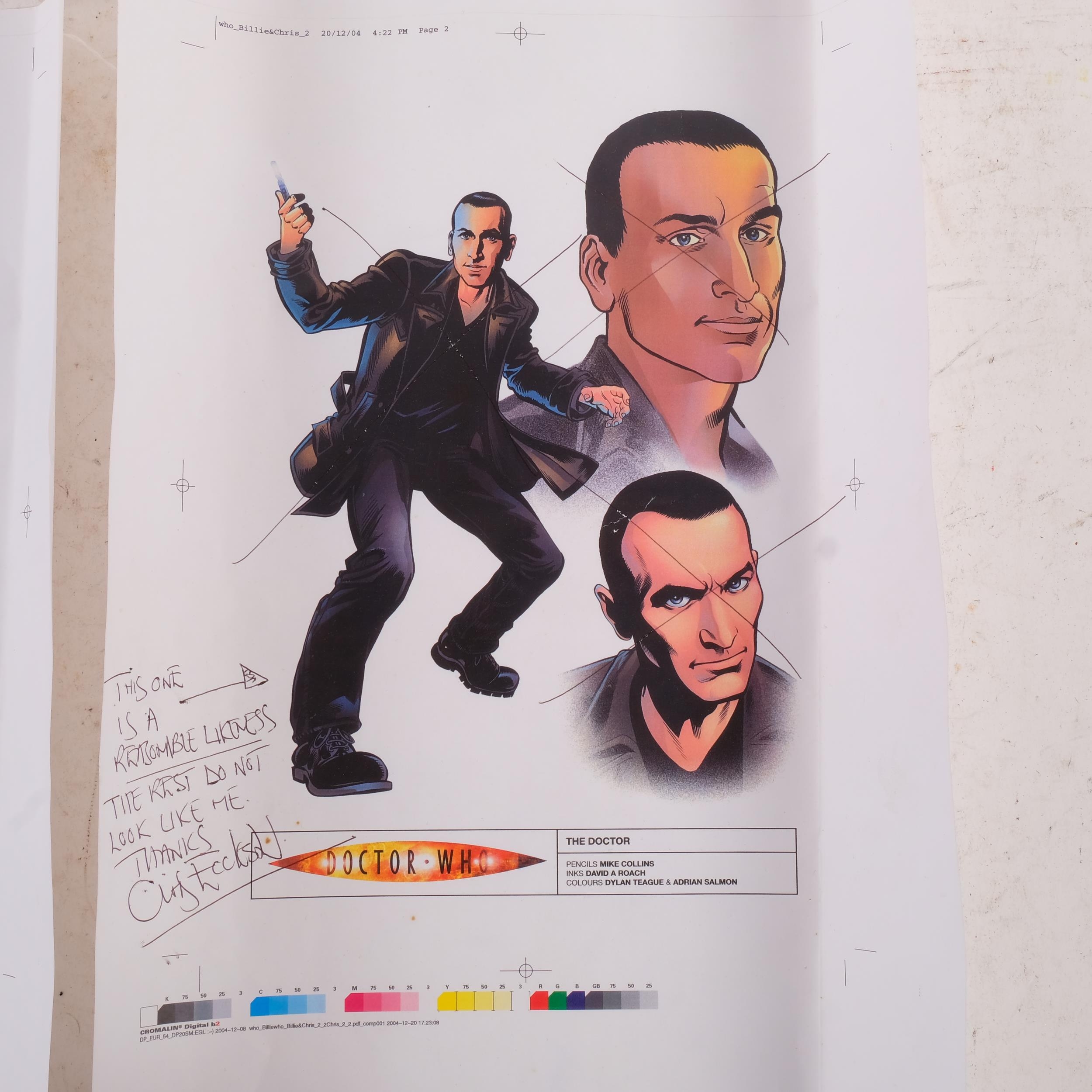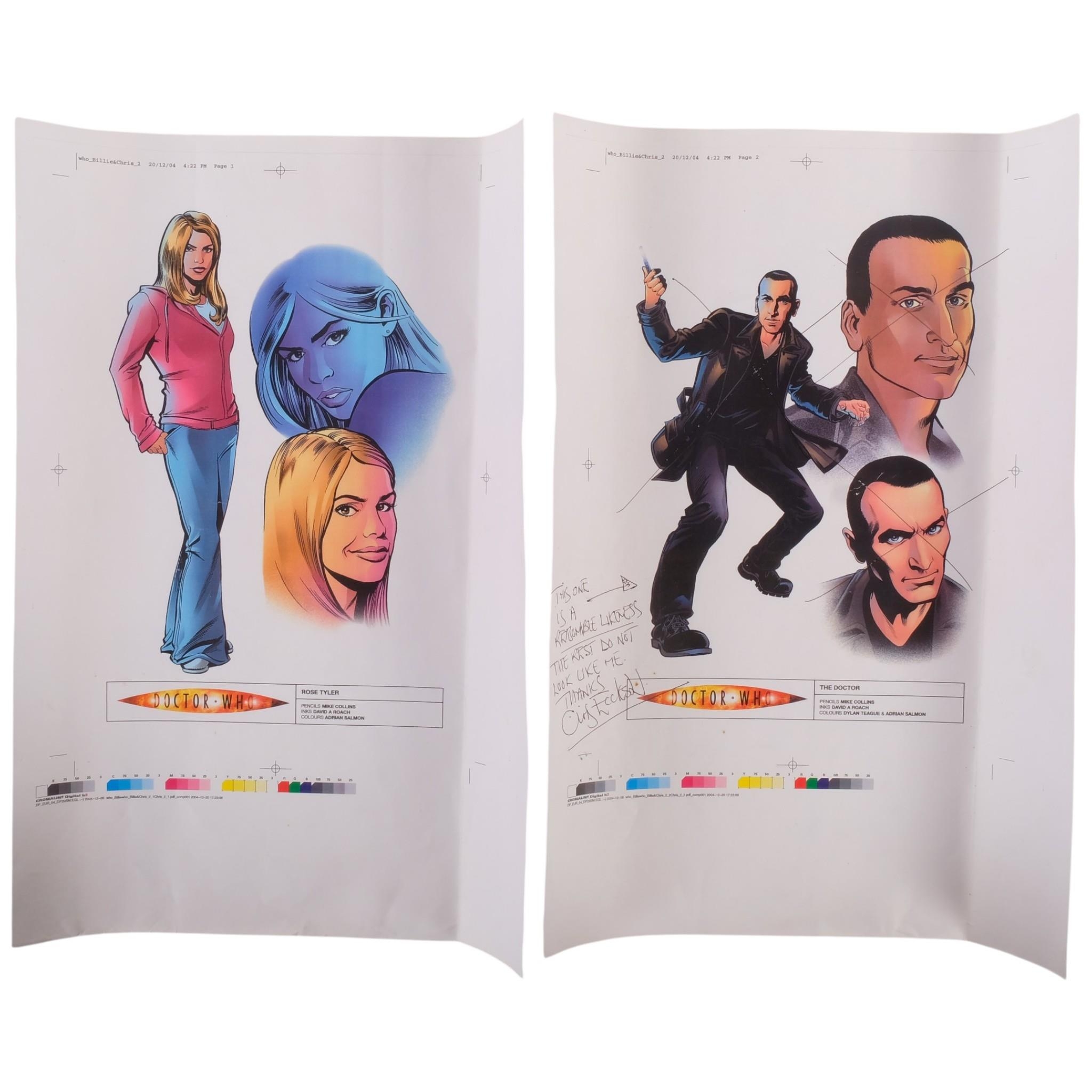 Dr Who, 2 printed character studies of Christopher Eccleston and Billie Piper, 1 inscribed and signed by Eccleston