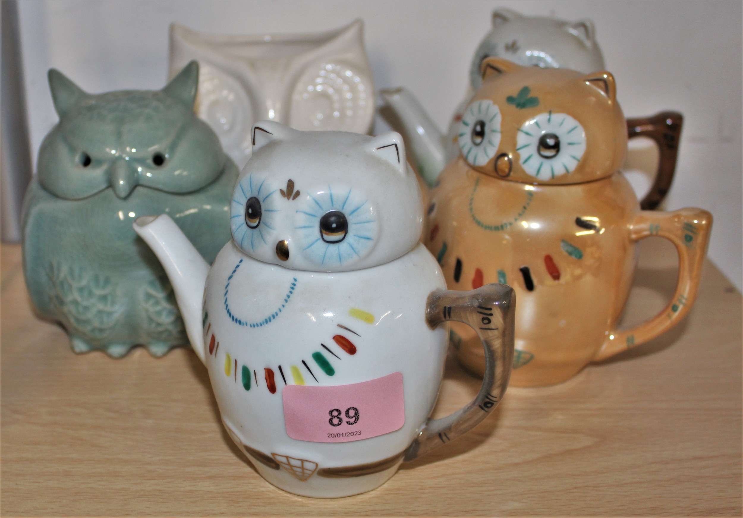 Three Modern Chinese Owl-Themed Teapots, an Owl Shaped Potpourri/Oil Container, etc