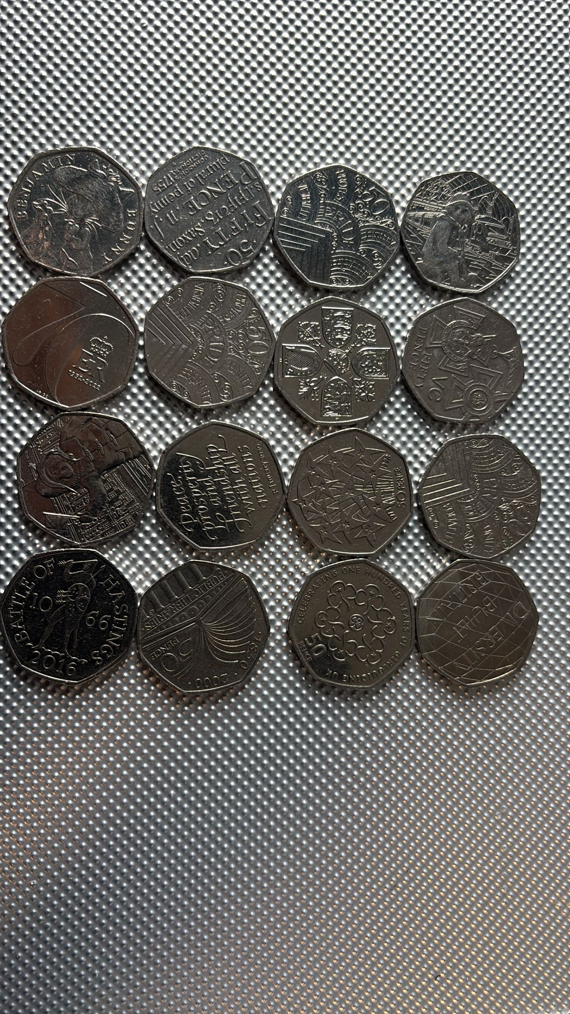 UK 50p Coin Collection – 16 Mixed Commemorative Coins (as pi...