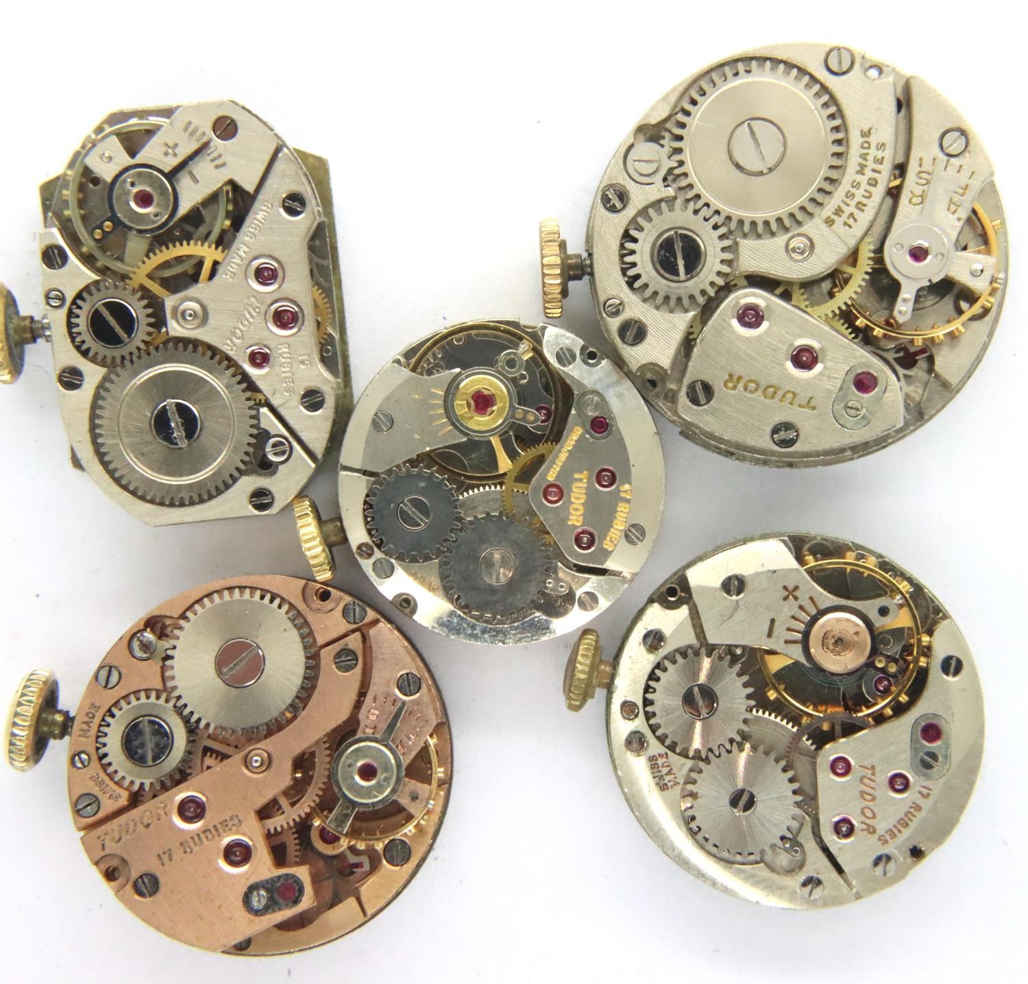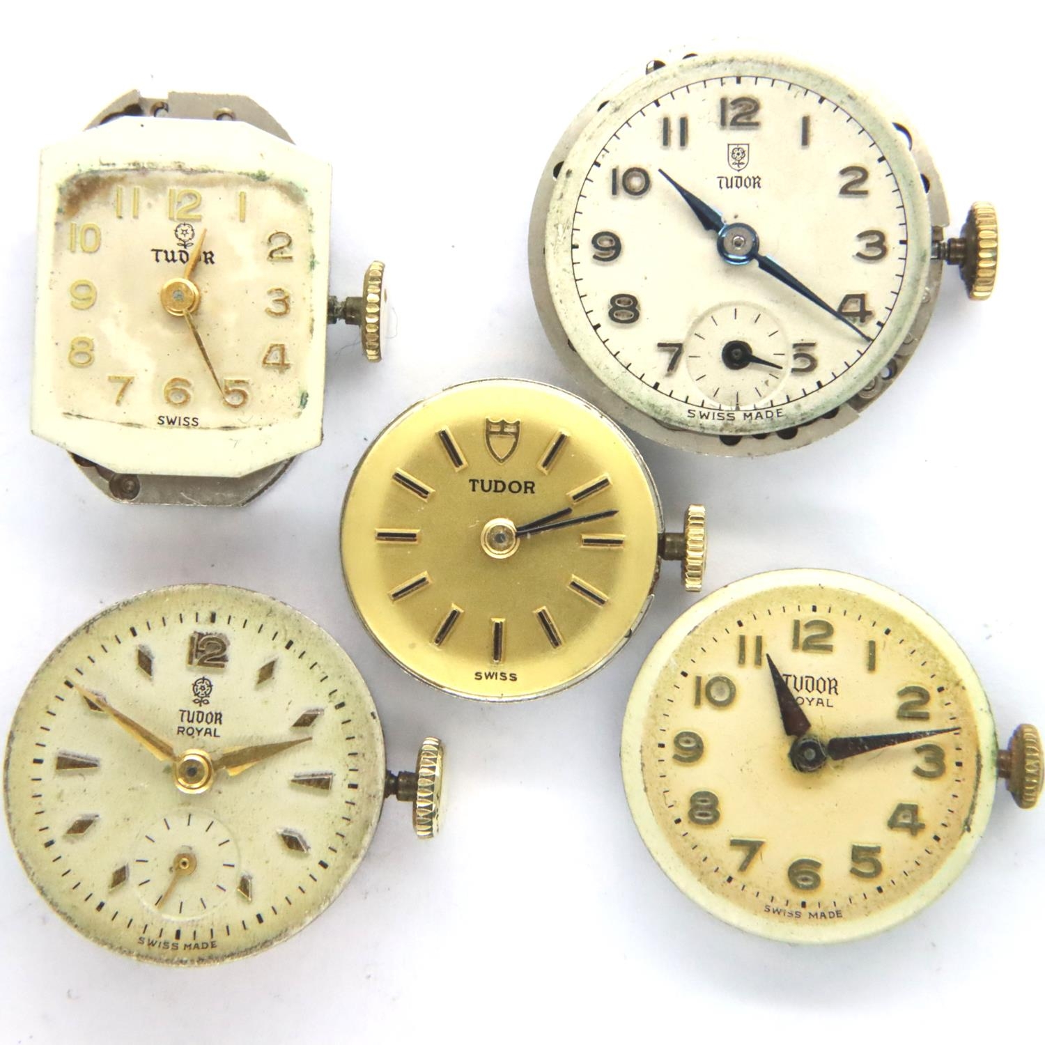 Rolex; five ladies Tudor wristwatch movements. P&P Group 1 (£14+VAT for the first lot and £1+VAT for subsequent lots)