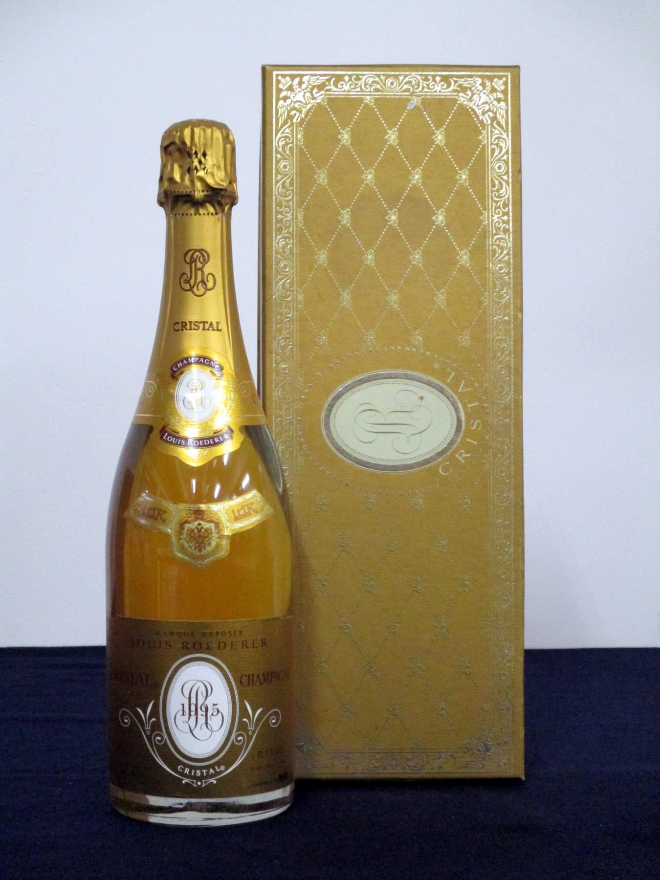 1 bt Louis Roederer Cristal Champagne 1995 oc cellophane wrapped, presentation case