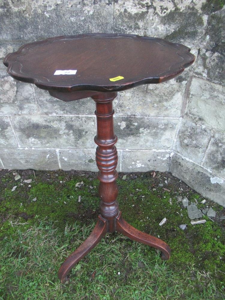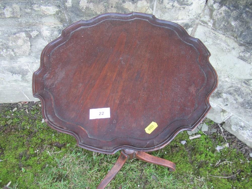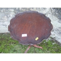 A occasional table with pie crust top, raised on turned column terminating on 3 legs , diameter 16ins , height 31ins