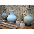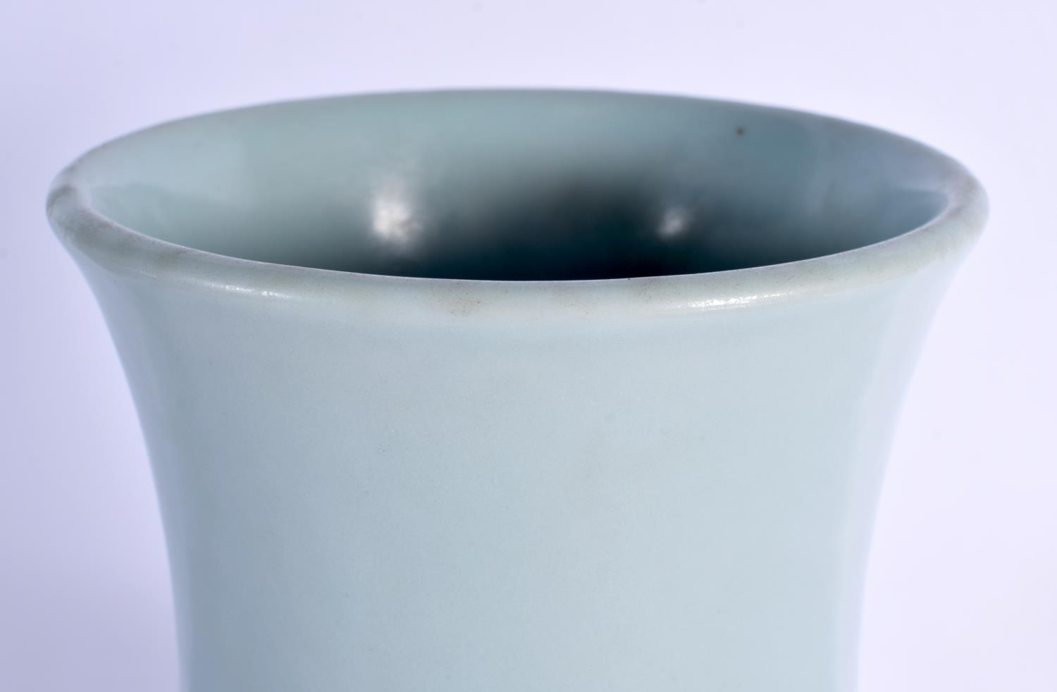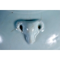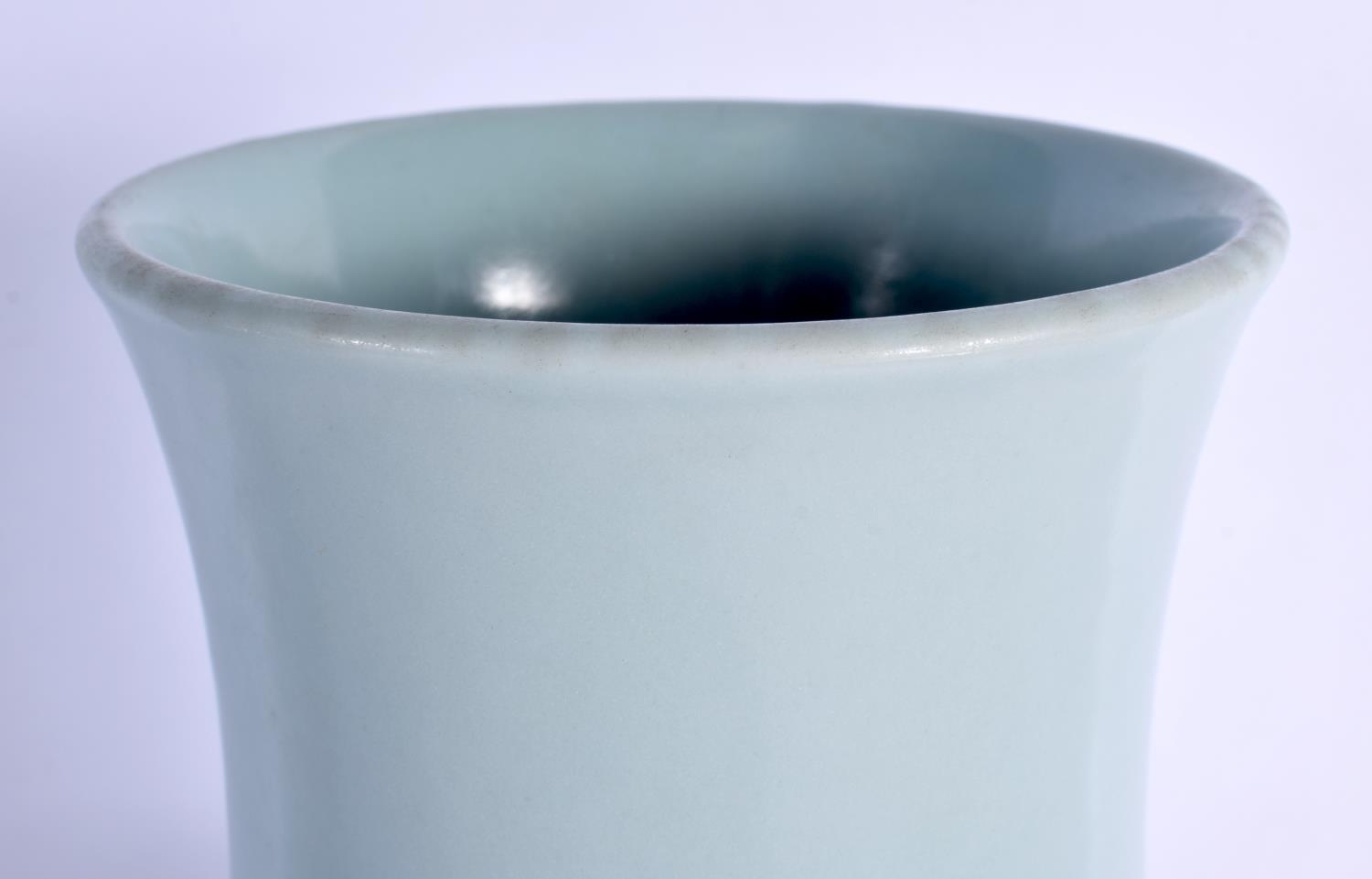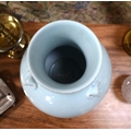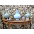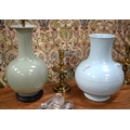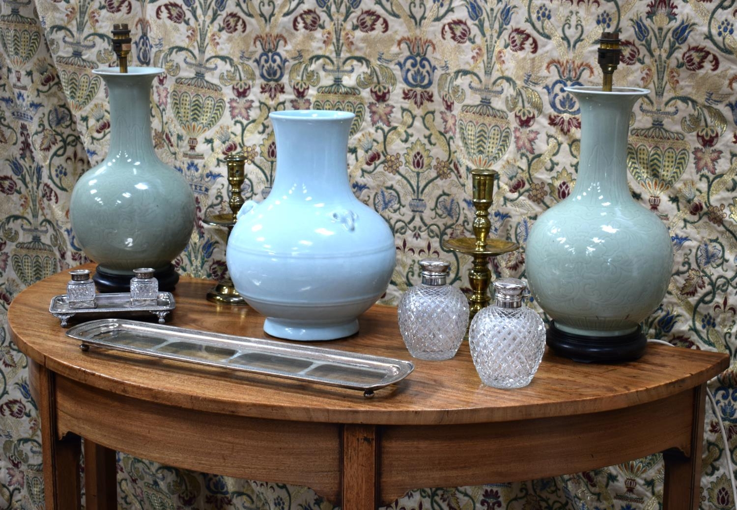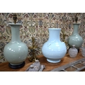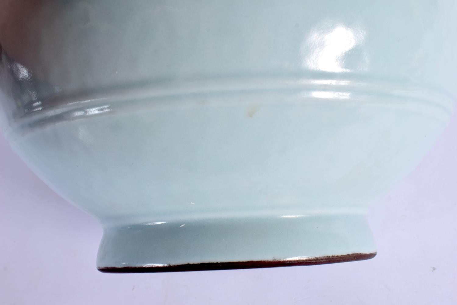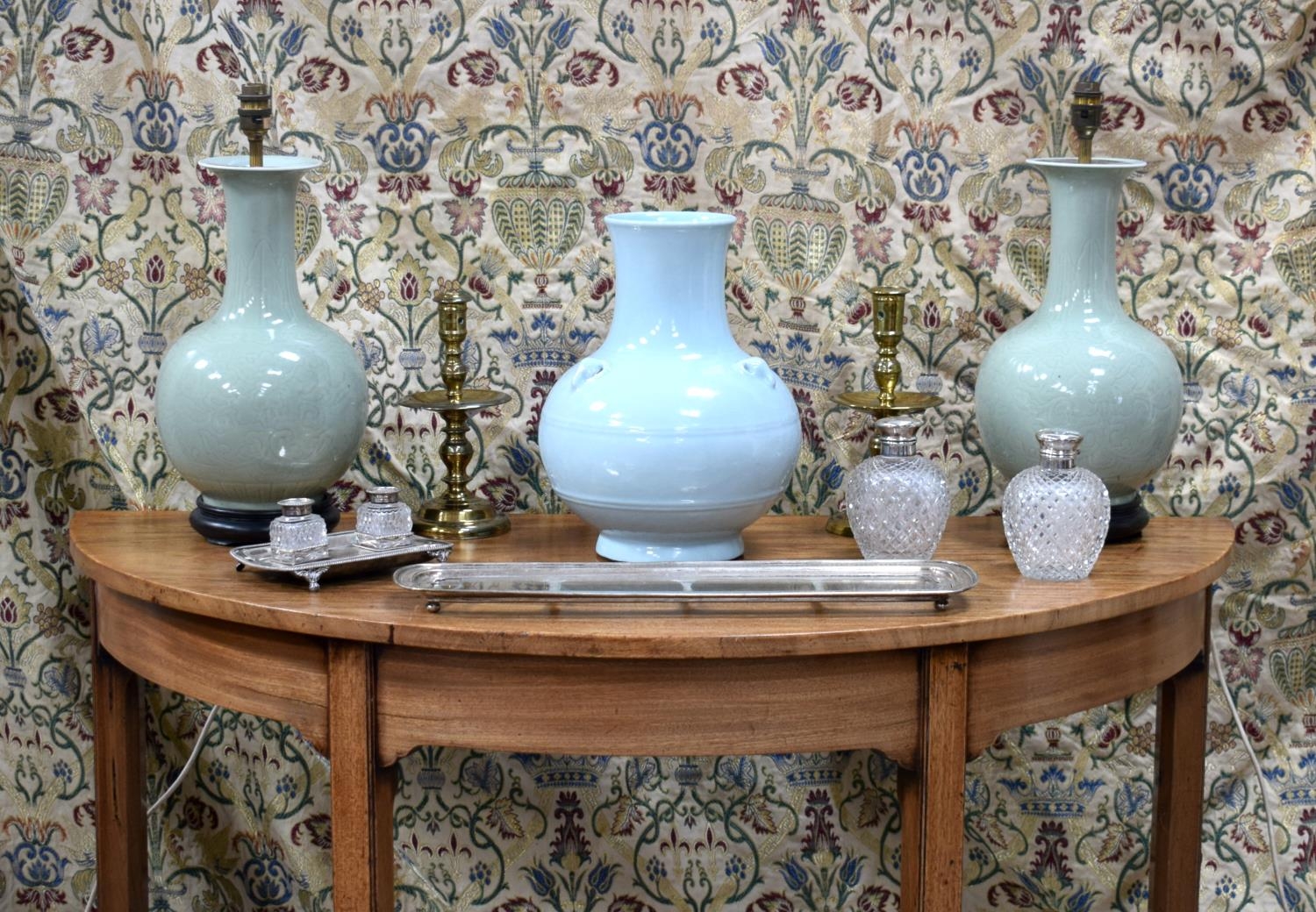 A FINE AND EXTREMELY RARE CHINESE RU-TYPE 'THREE RAMS' BULBOUS VASE Yongzheng Mark and Probably of the Period finely potted the globular body supported upon a flared foot and rising to a thick waisted neck with flared mouth encircled by two double raised fillets around the body and another at the base of the neck applied with three rams head at the shoulders covered overall with a pale blue glaze. 33 cm x 20 cm. Provenance: Private UK Residence consigned with several 17th/18th century Chinese Export pieces amongst other items European items collected principally in the 1970s and 1980s by the current vendors parents. Note: See two further vases a Yongzheng and a Qianlong example with a similar Ru-type glaze in the National Palace Museum Taipei the former published in the Illustrated Catalogue of Ch'ing Dynasty Porcelain in the National Palace Museum: K'ang-hsi Ware and Yung-cheng Ware Tokyo 1980 pl. 129 the latter included in the Museum's exhibition Qingdai danseyou ciqi /Special Exhibition of Ch'ing Dynasty Monochrome Porcelains in the National Palace Museum Taipei 1989 cat. no. 88. Another Qianlong vase with a Guan-type glaze in the Walters Art Gallery Baltimore is published in S.W. Bushell Oriental Ceramic Art London 1981 (1896) col. pl. LXXVII. For a teadust glazed 'three ram' vase of Qianlong mark and period see one from the collections of T.Y. Chao and Ira and Nancy Koger sold three times in Sotheby's 1979 1986 and 1992 and once in their New York rooms 1990 illustrated in Sotheby's. Thirty Years in Hong Kong Hong Kong 2003 pl. 157.