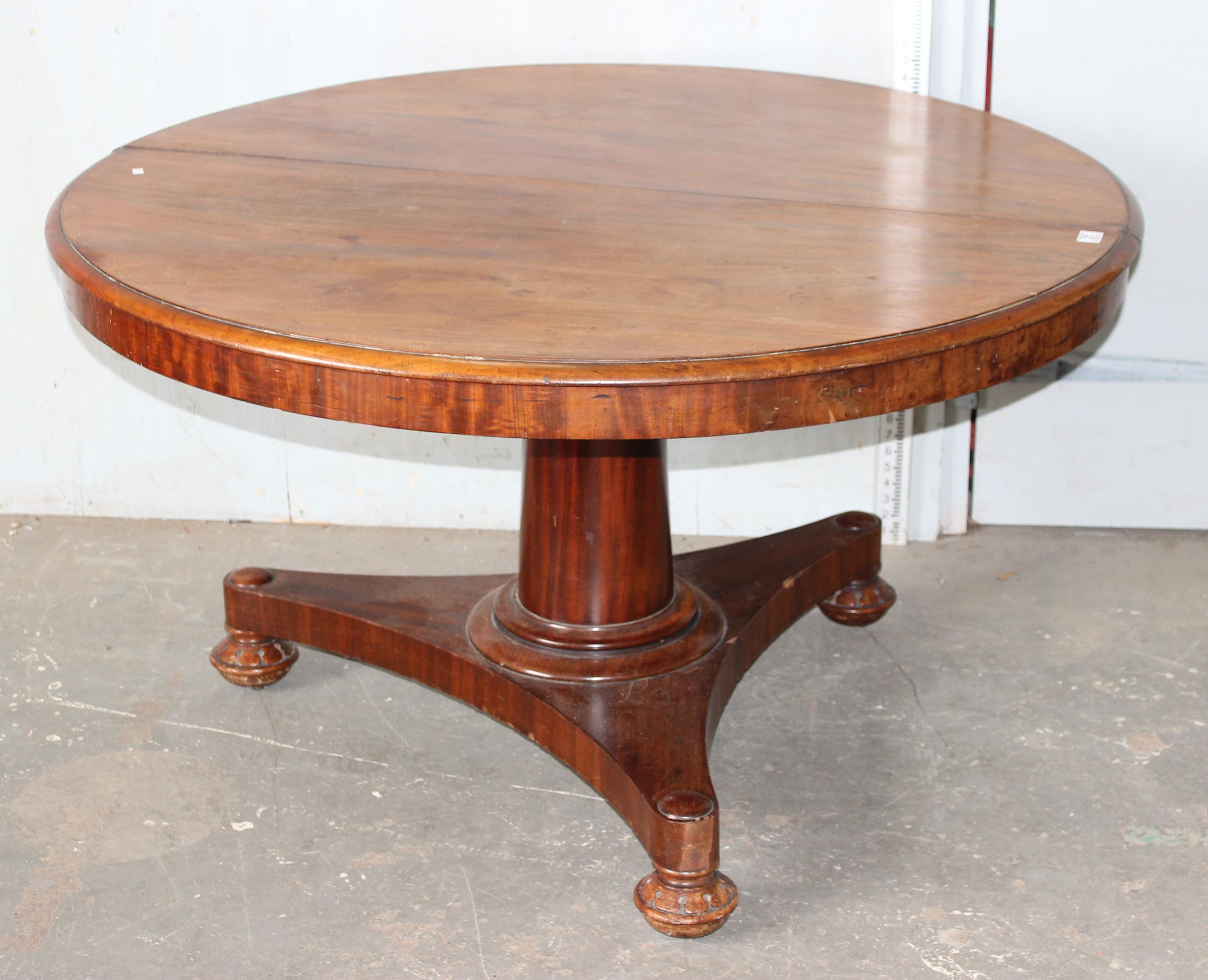A large Victorian mahogany tilt topped breakfast table on pedestal base