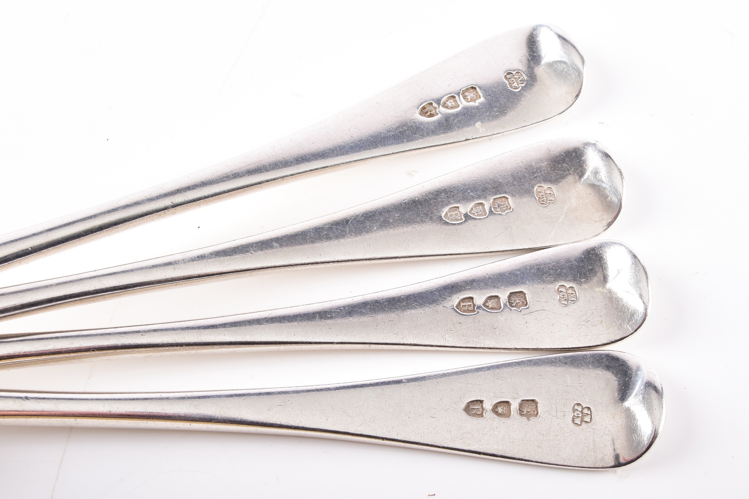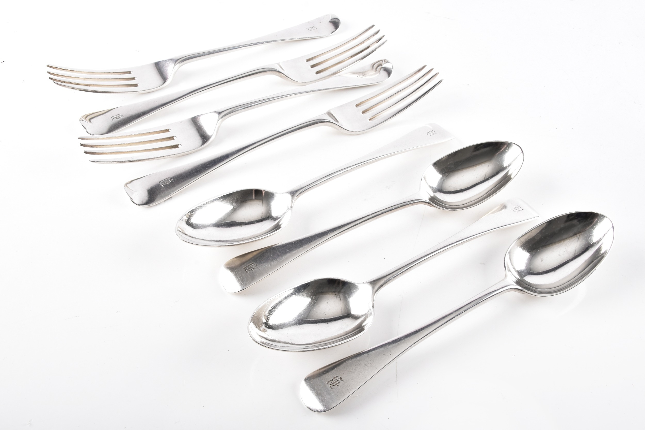 A set of four Victorian silver forks and four spoons, all hallmarked for London 1892 by Wakely & Wheeler, initial engraved, forks 20.5 cm long, spoons 18.5 cm long. (8)