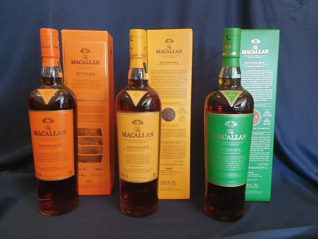 3 x Limited Edition Collectable Bottles of Macallan Single Malt Whisky (70cl); Edition No. 2, No. 3 and No. 4 - in Original Boxes.