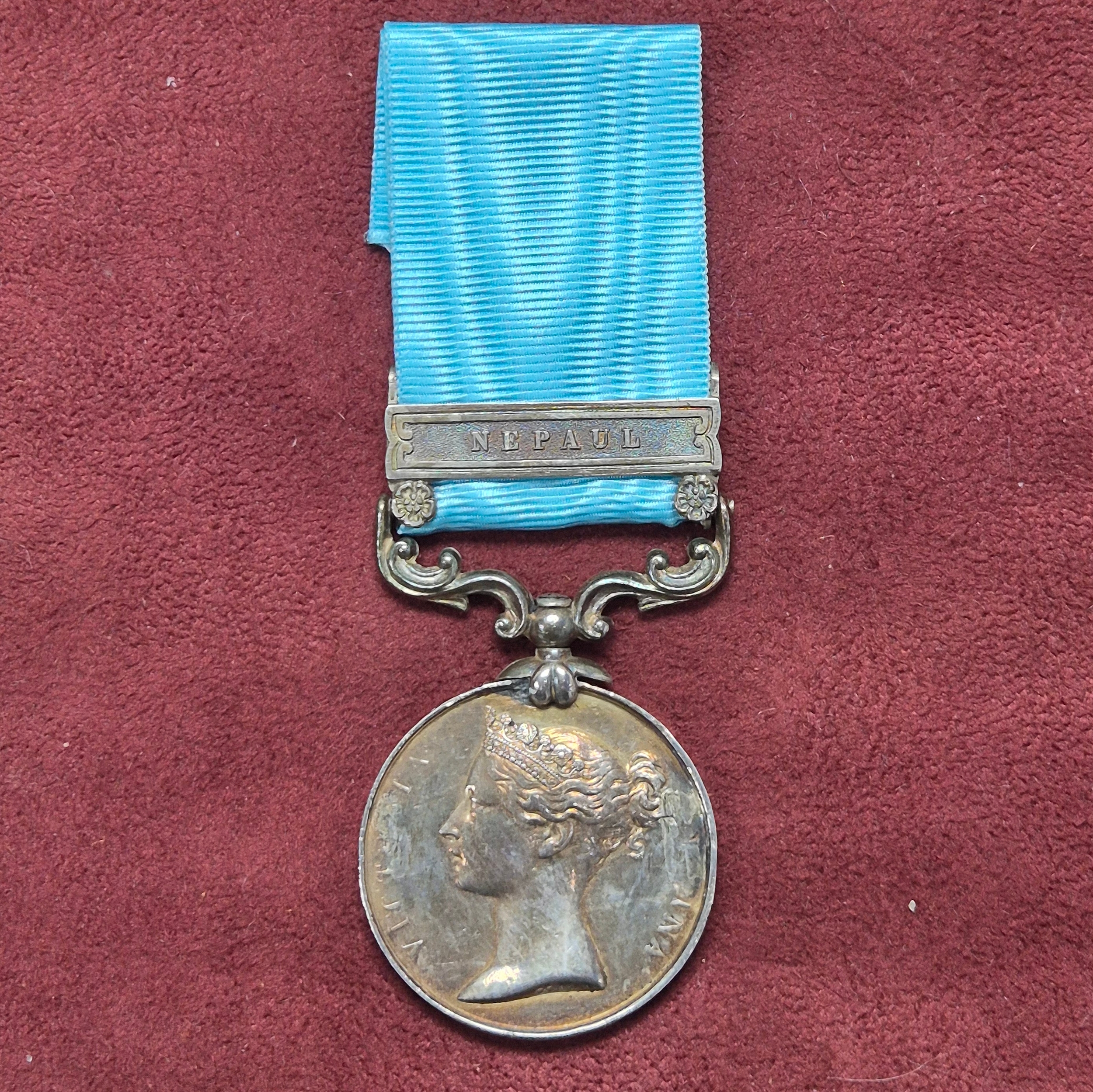 An Army of India Medal with a Nepal Clasp (Anglo-Nepalese War) issued to Robert Hewart 17th Foot