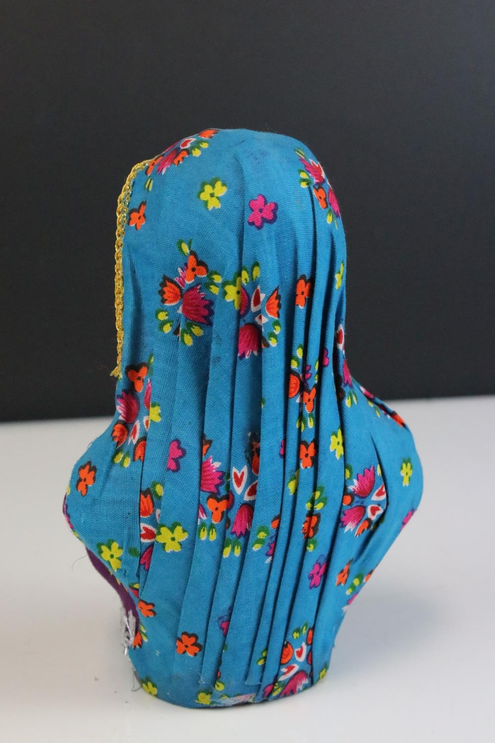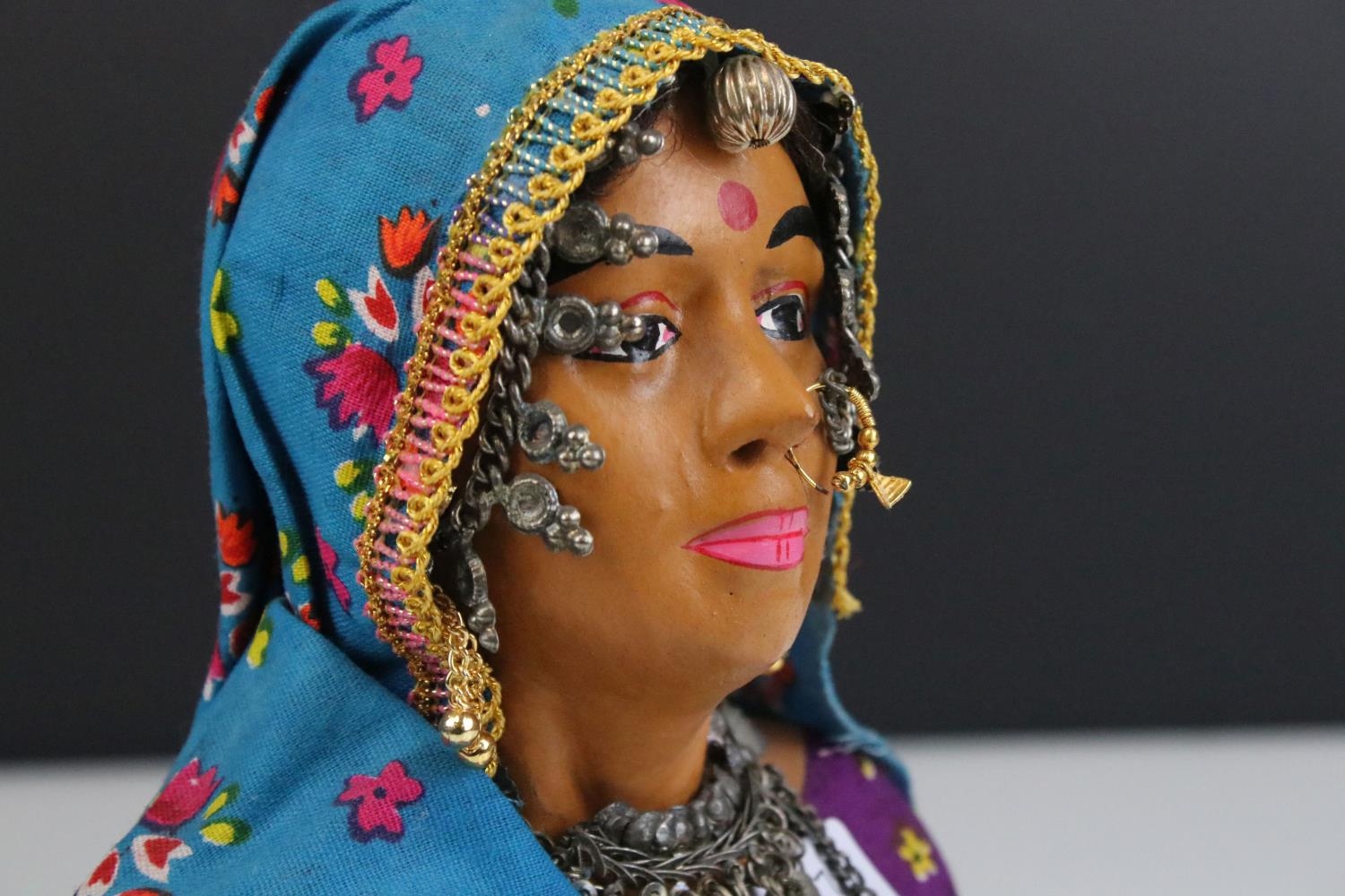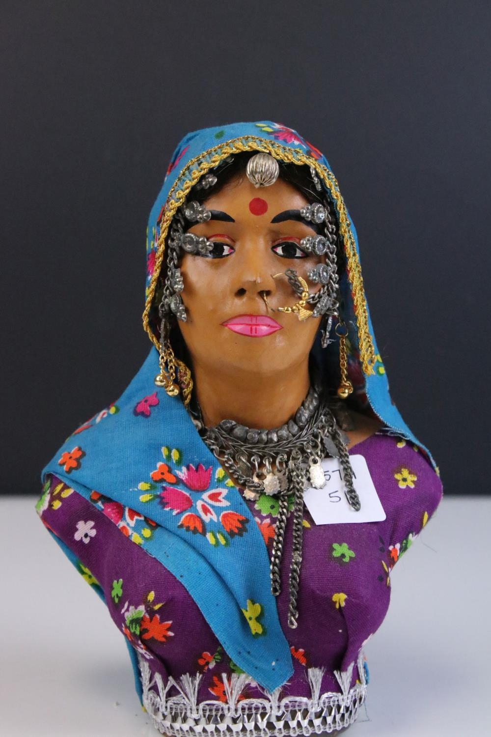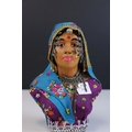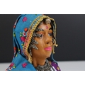 A bust of an indian woman in traditional costume.