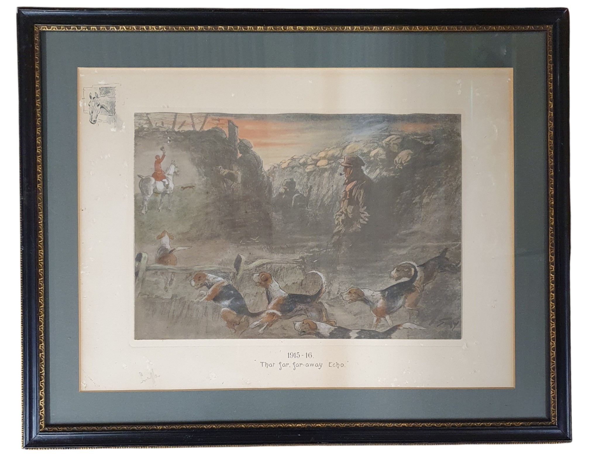 A good early Snaffles coloured Print '1915/16 That far far away echo'. 47 x 59 cm approx.