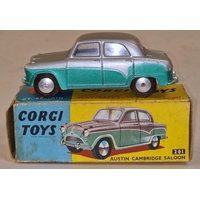 Vintage boxed Corgi model 205 Riley Pathfinder Saloon, blue/yellow box. Model is very good with little sign of use in a complete box with some storage wear.