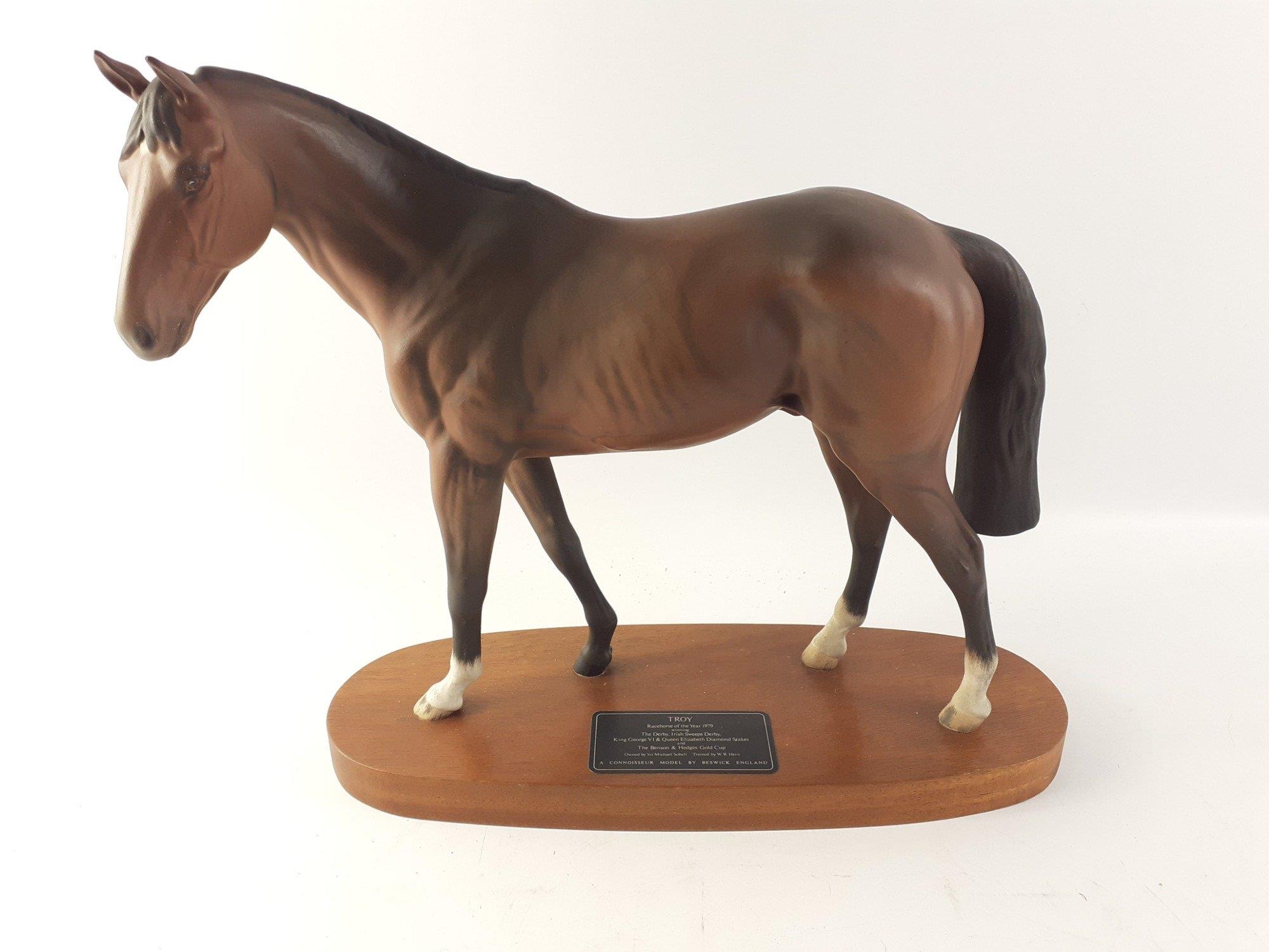 BESWICK RACE HORSE - TROY. A Connoisseur Model by Beswick England on a wooden plinth. 28cm high approx on plinth, in good undamaged condition