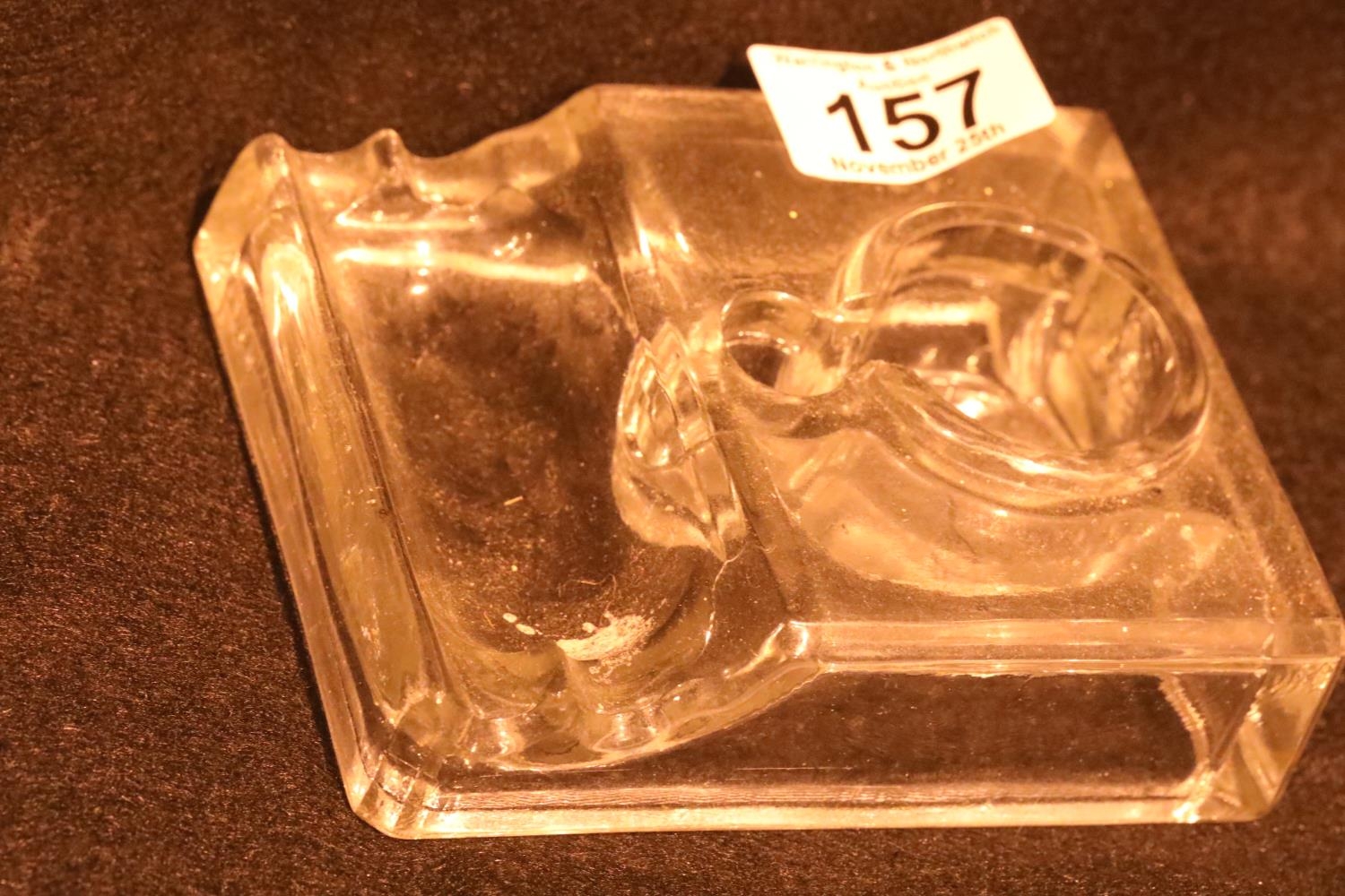 Vintage glass desk inkwell. P&P Group 1 (£14+VAT for the first lot and £1+VAT for subsequent lots)