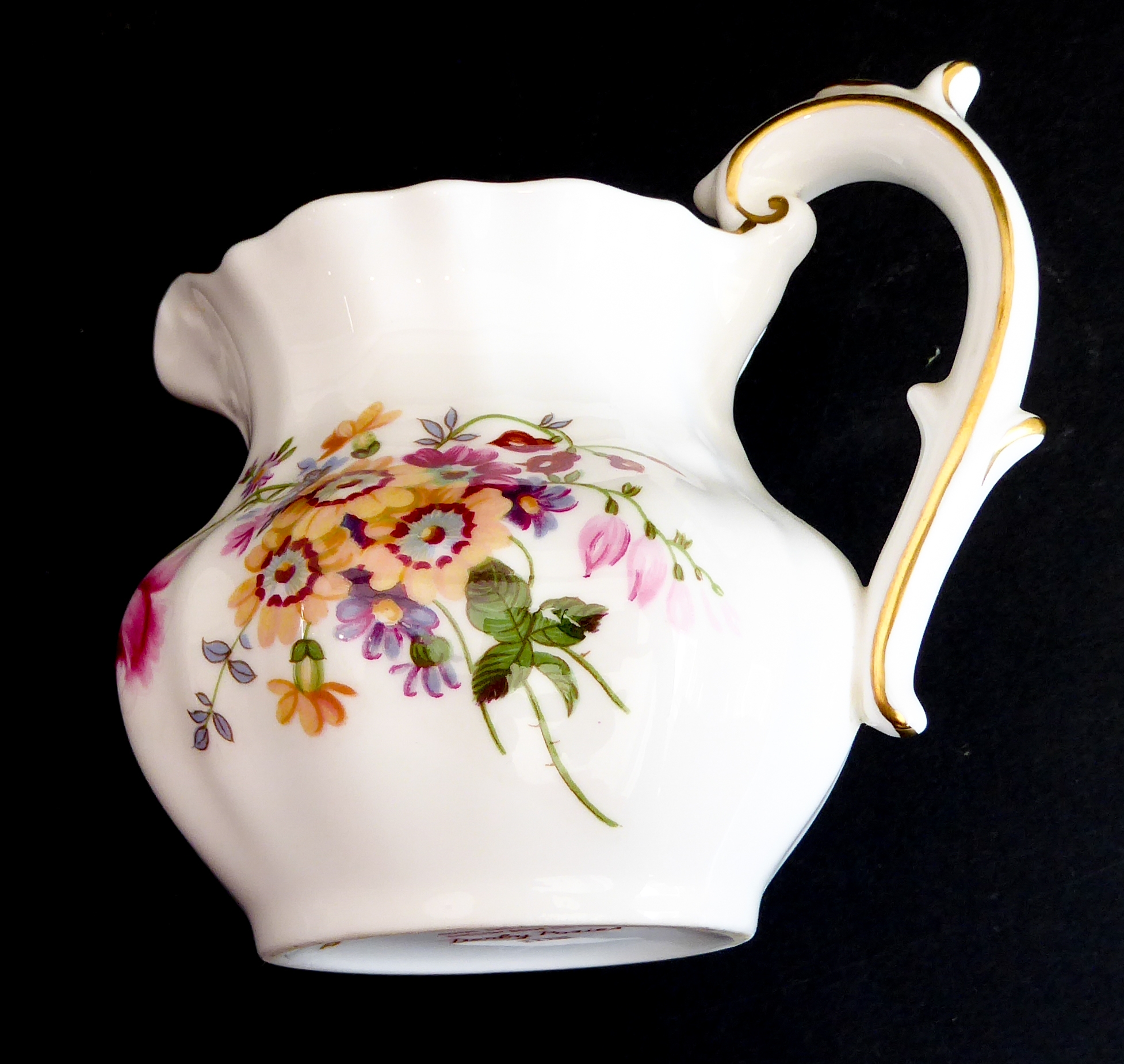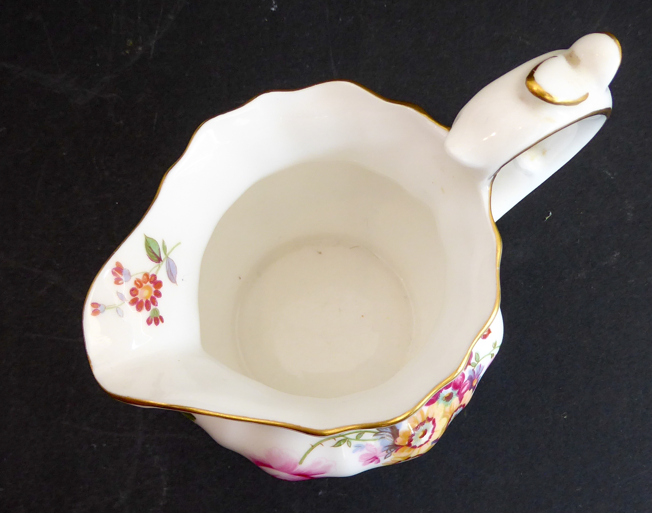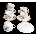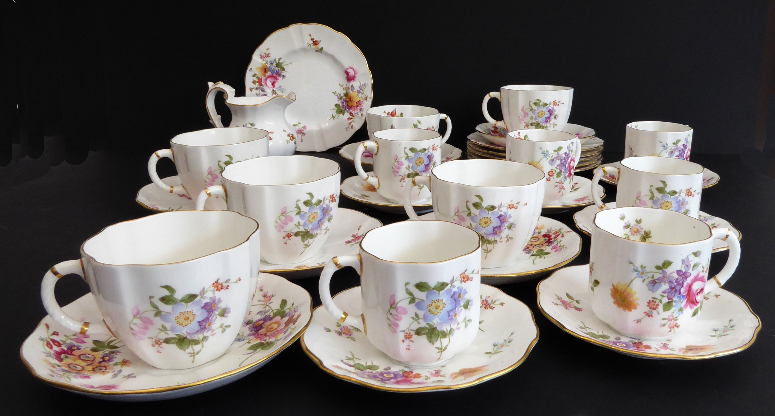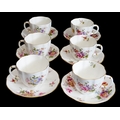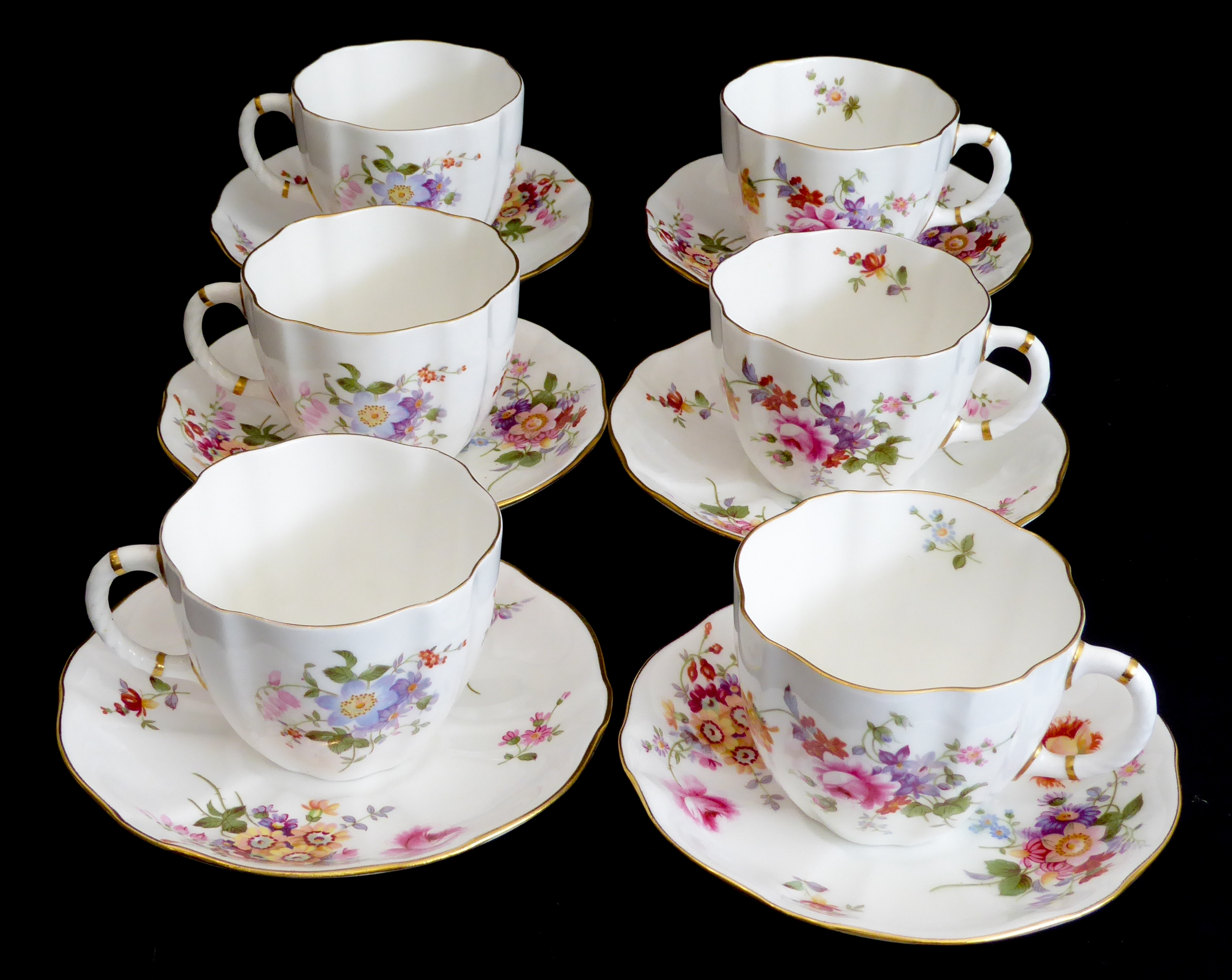 A Royal Crown Derby 'Derby Posies' six-place service comprising tea and coffee cups and saucers, side plates and a cream jug.