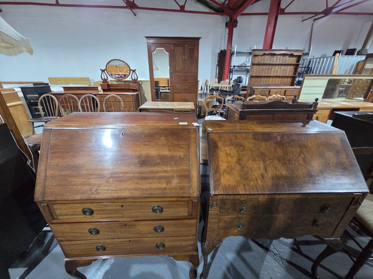 Two mahogany writing bureaus on cabriole legs