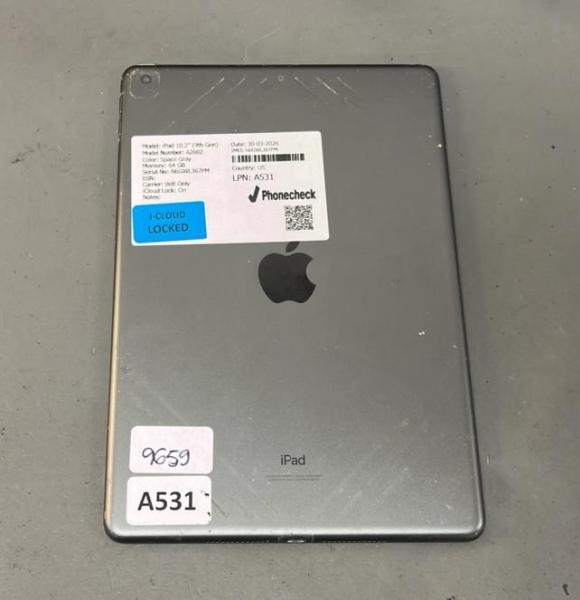 APPLE IPAD 10.2"(9TH GEN)/ A2602/ SPACE GRAY/ 64GB/ I-CLOUD LOCKED/ IMEI: N6GWL367PM