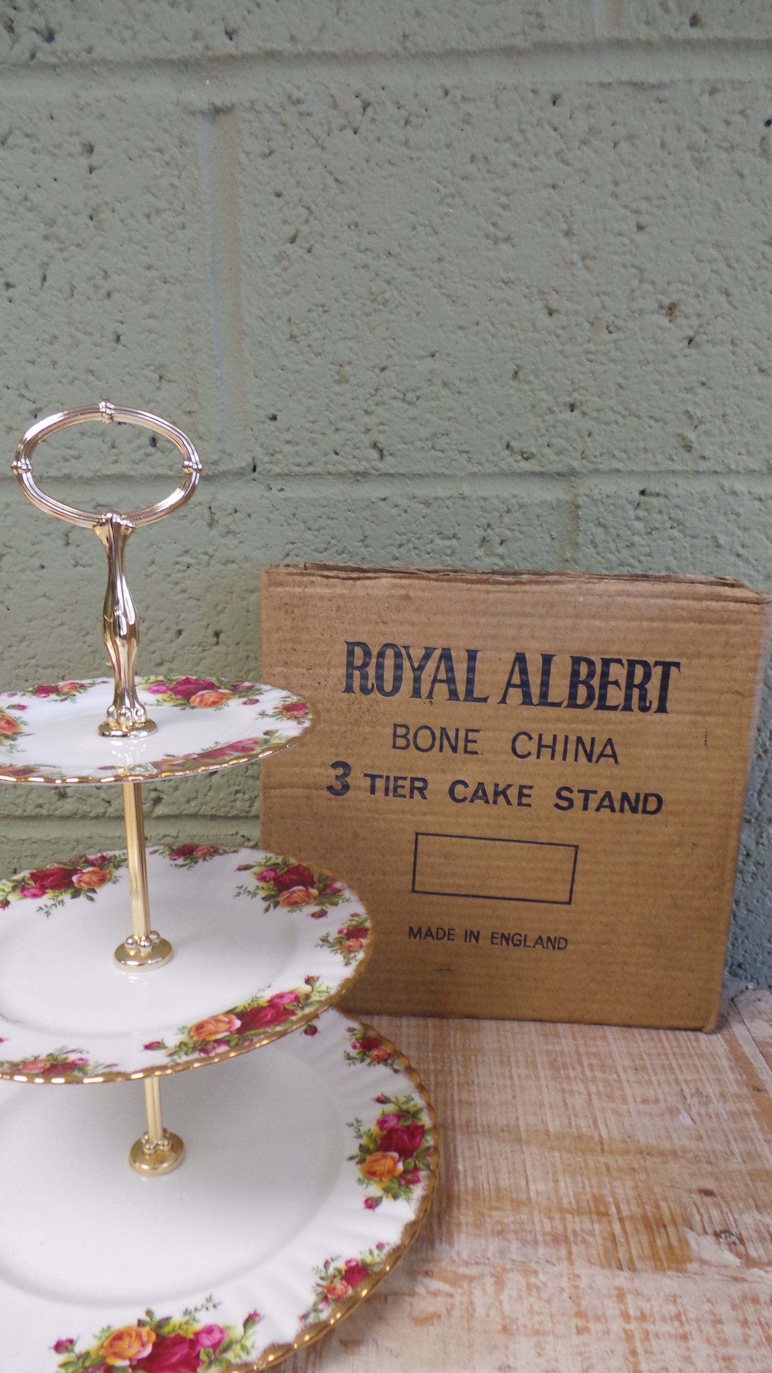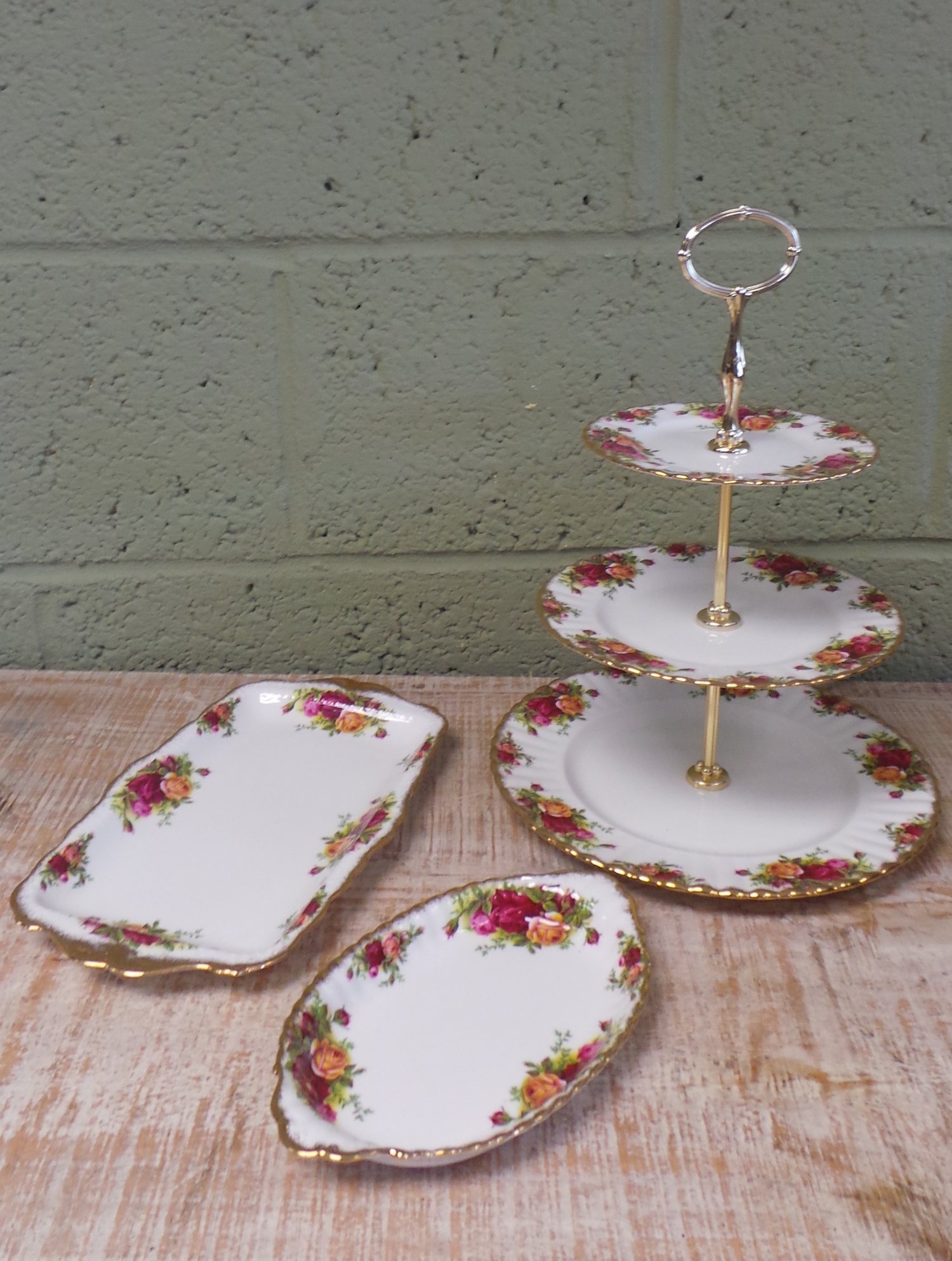 Royal Albert Old Country Rose Cake Stand and 2 Plates
