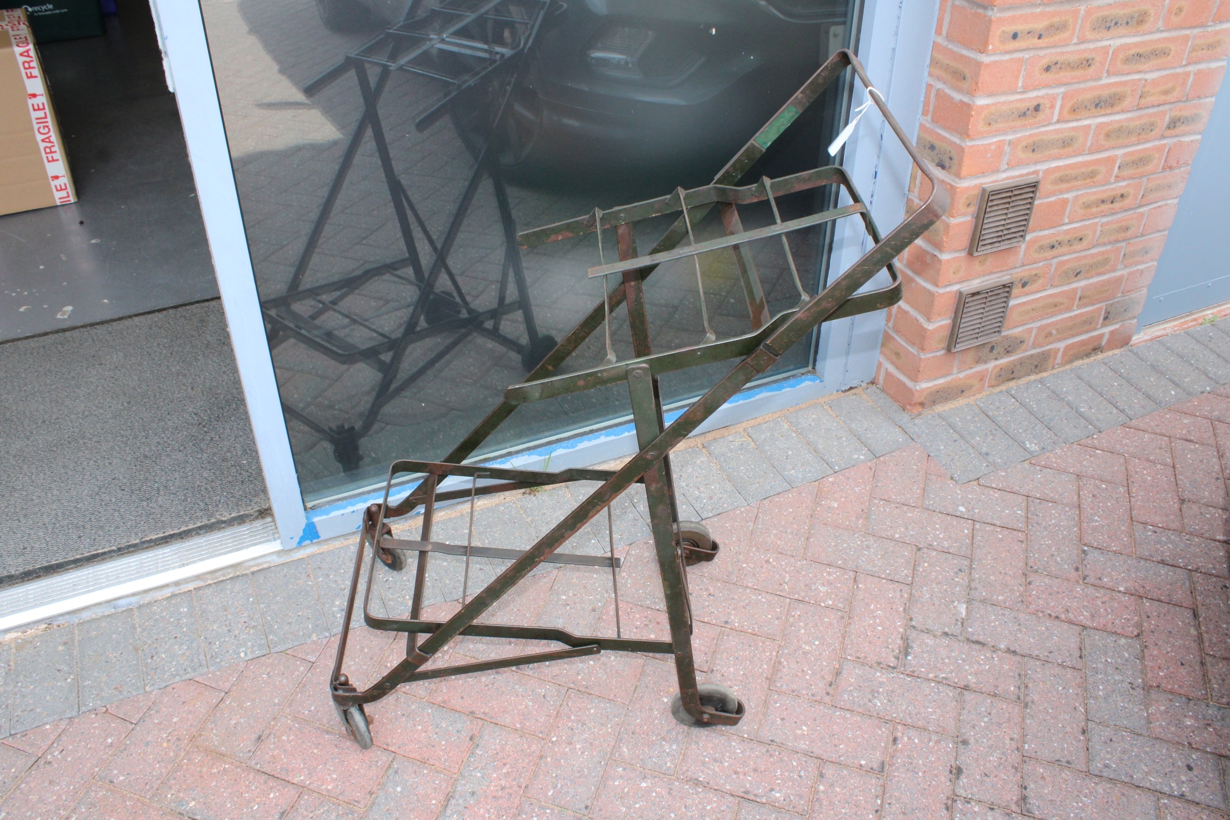 Tote-Cart, Illinois folding shopping trolley/cart in pressed steel, 92cm tall.
