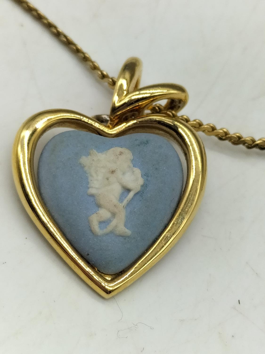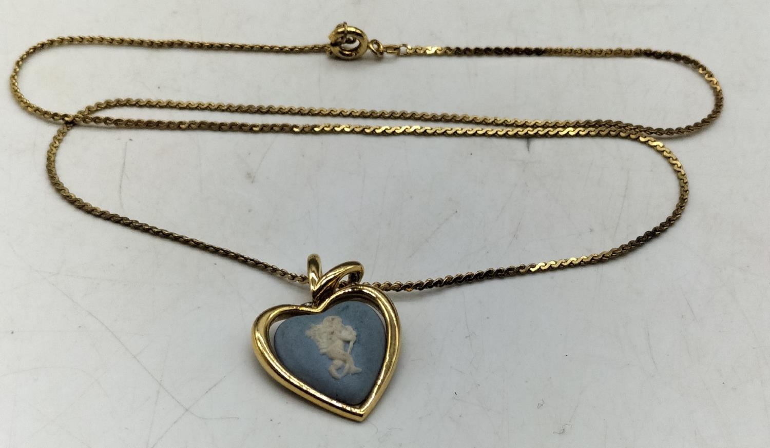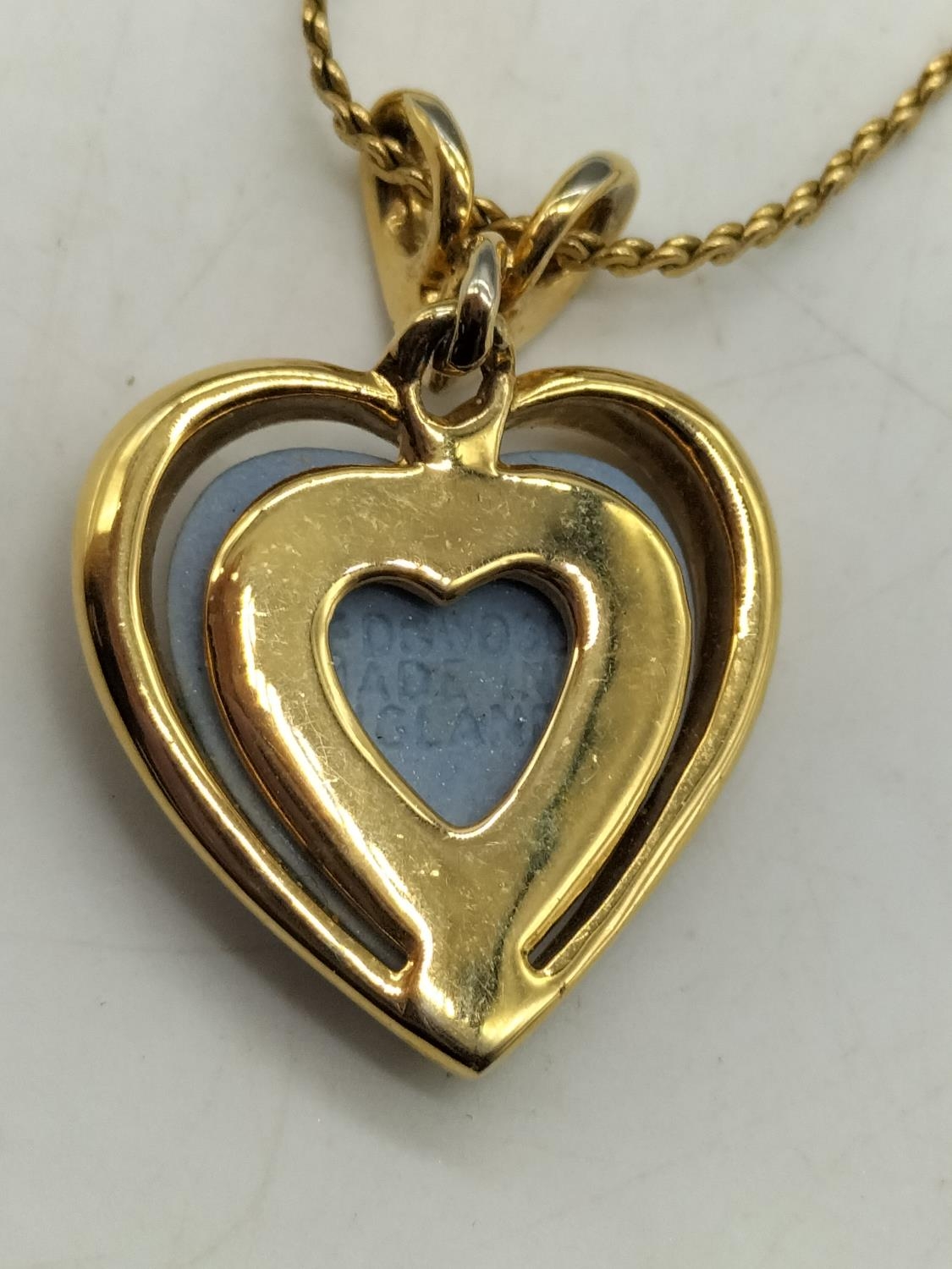 Wedgwood Blue Heart Design Necklace. 2cm x 2cm on 18" Chain.