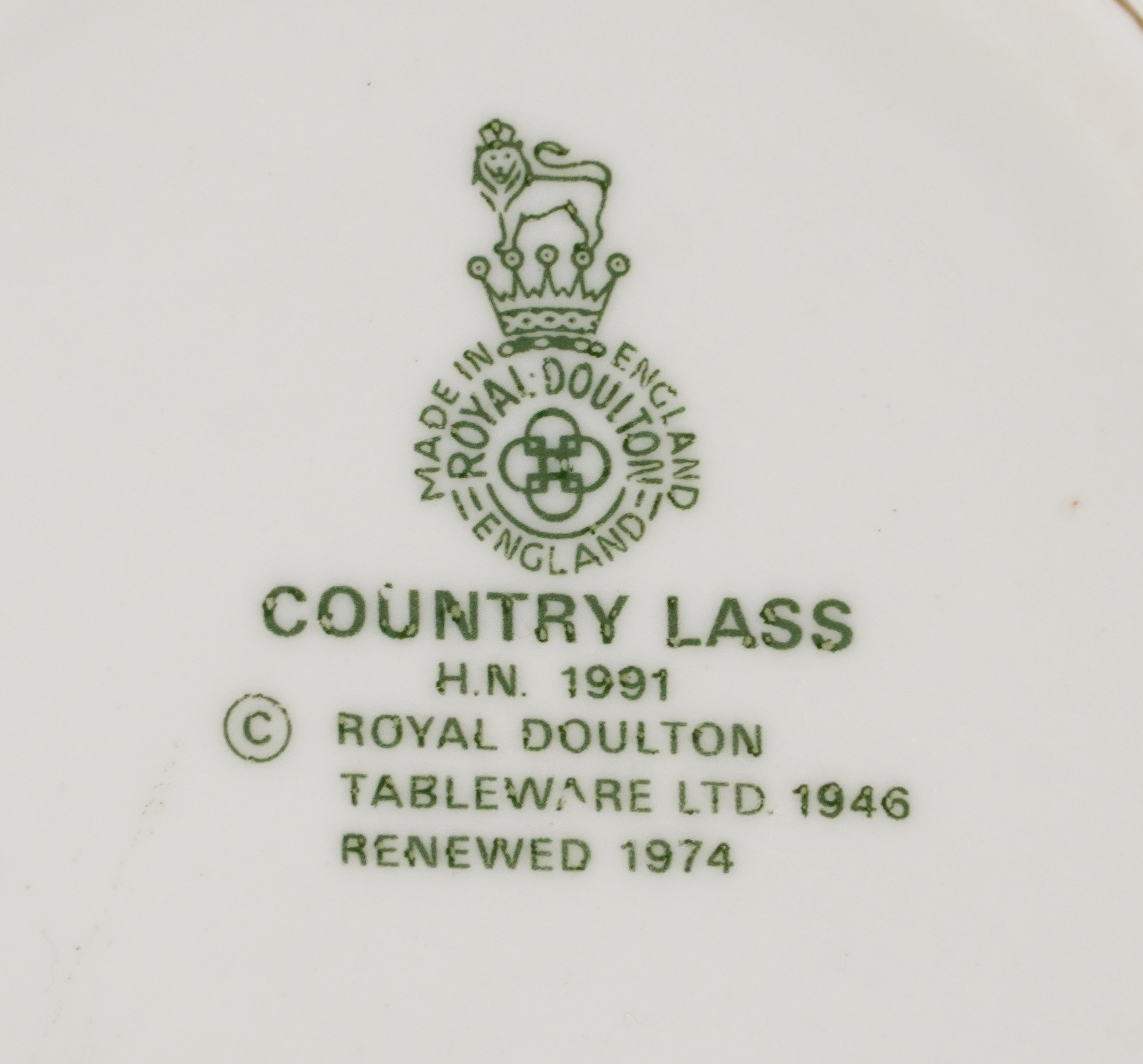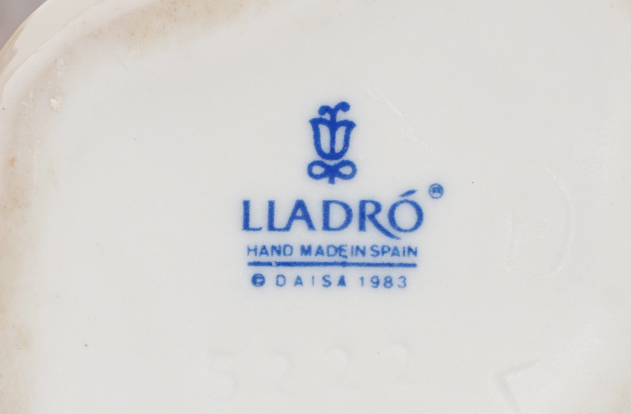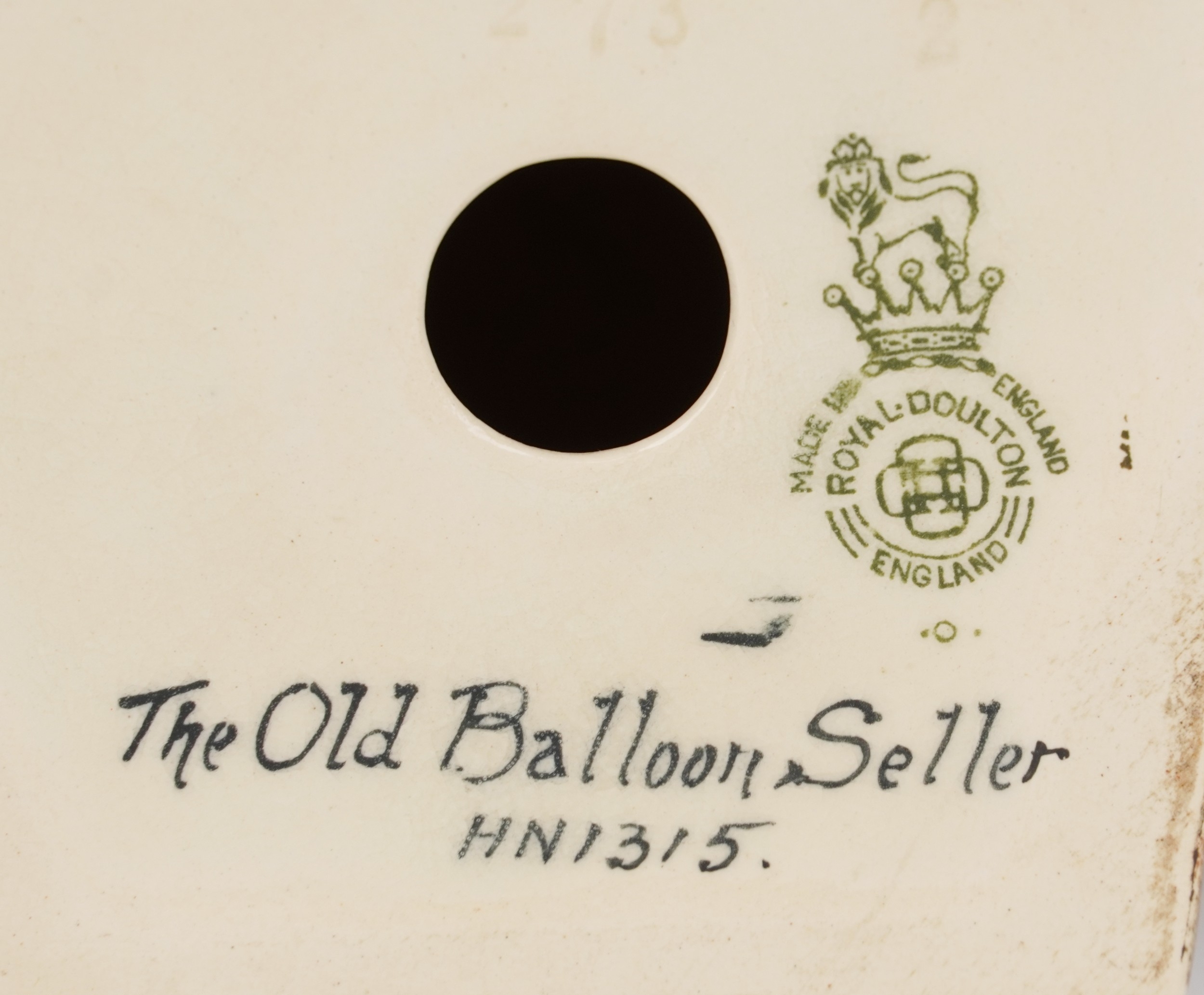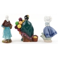A Royal Doulton The Old Balloon Seller HN 1315 together with a Royal Doulton Country Lass HN 1991 and a Lladro figure of a girl holding a basket, the largest 18cm high.