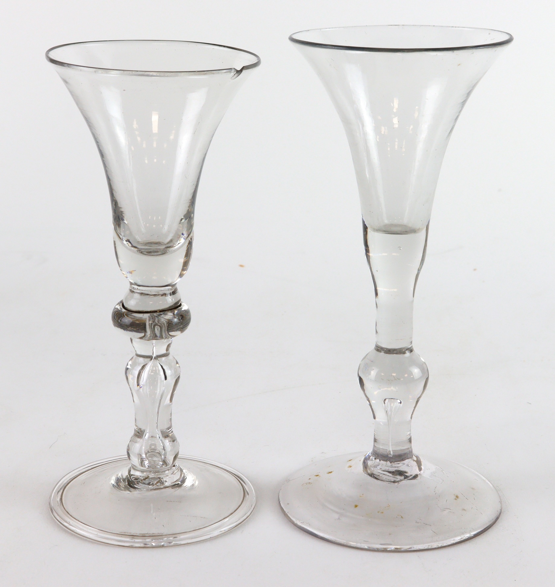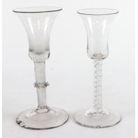 18th Century Wine Glasses (2), both about 1740, one with a chip to the base and the other with a chip to the rim