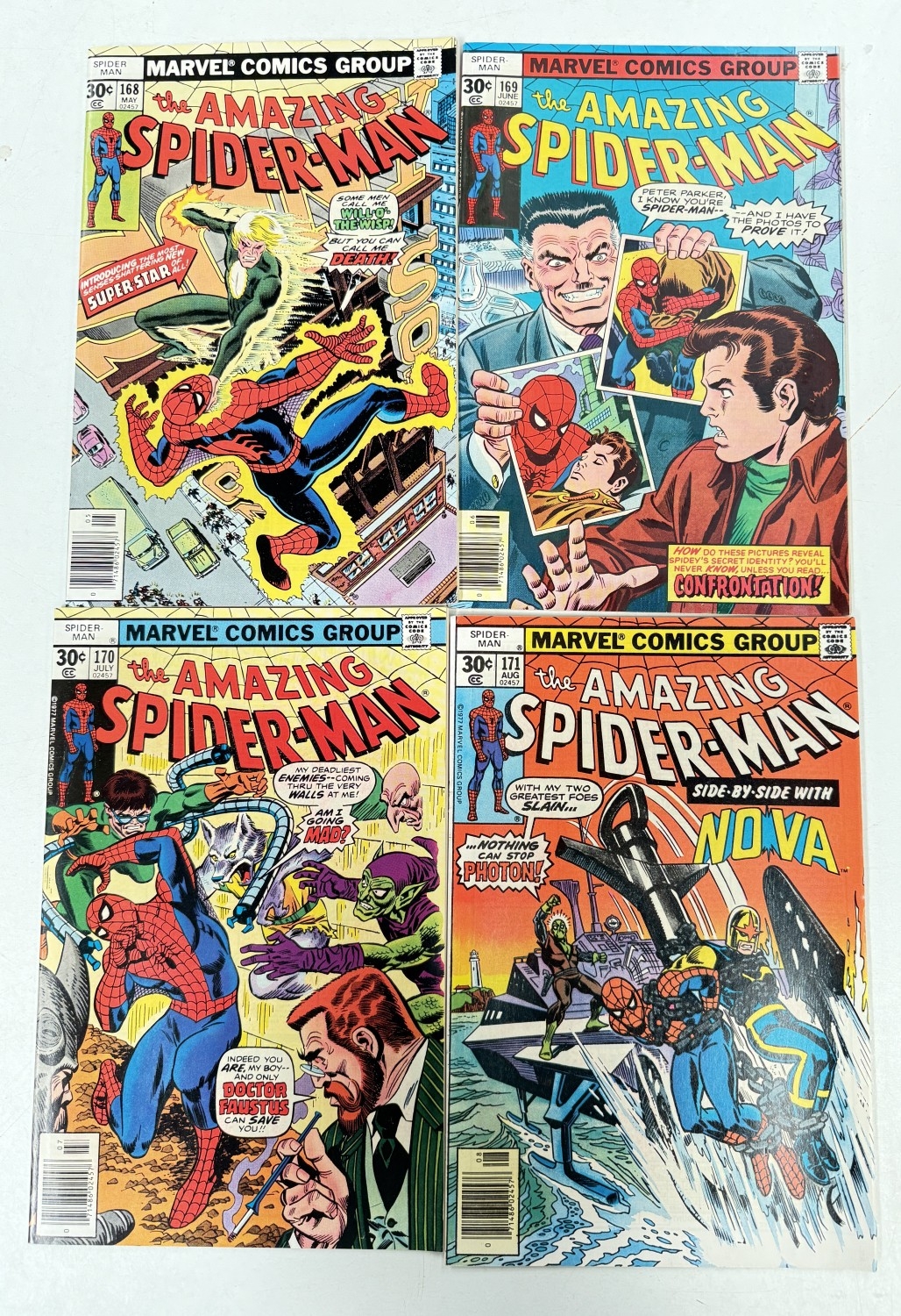 Marvel Comics - 'The Amazing Spider-Man' #168, 169, 170, 171, 172 (2), 173, 174 (2), featuring 'Willo-The-Wisp', return of 'The Punisher' etc. US price copies.