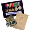 Second World War – David Warnsby – Second World War medal group awarded to David Warnsby. Includes; Defence and War medal, The 1939-1945 Star, The Africa Star and The Burma Star. In presentation case. Also, Soldier’s Release Class A Book to same person and South Staffordshire cap badge etc.