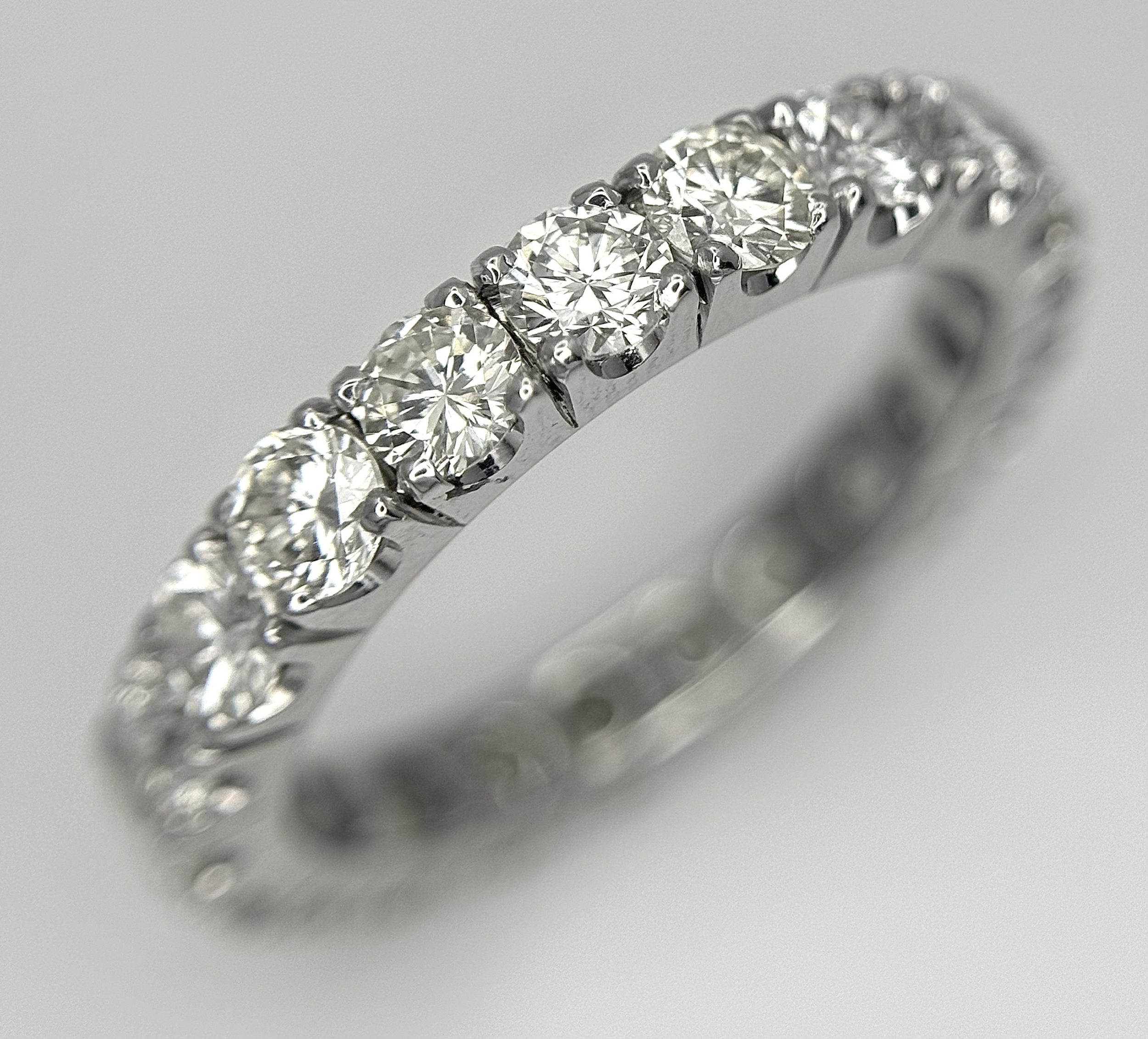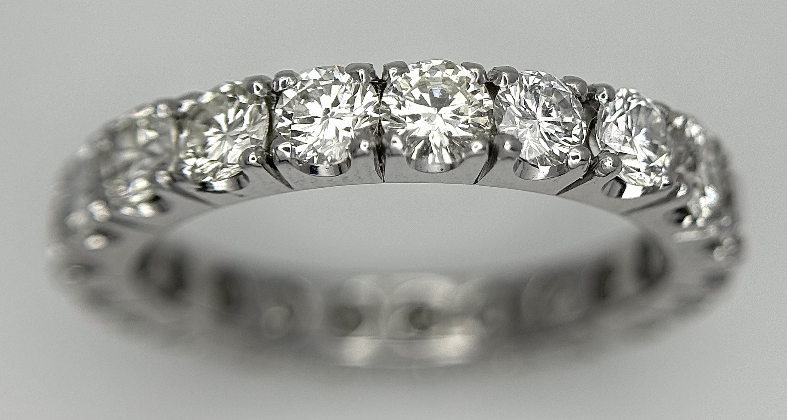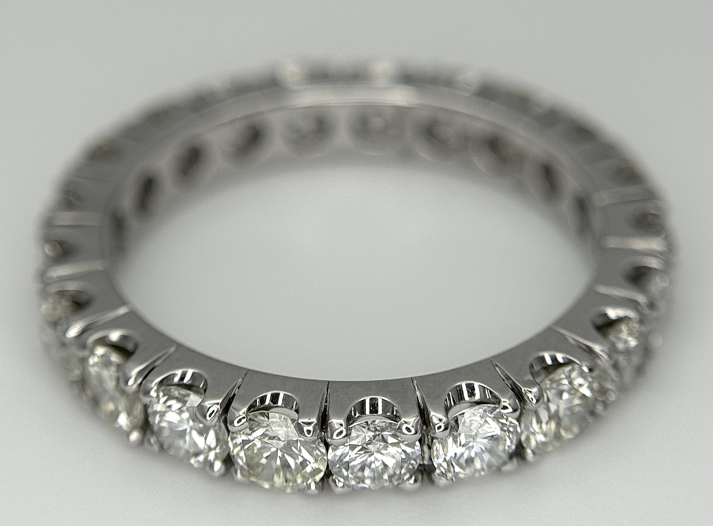A 950 Platinum Diamond Eternity Ring. 21 round brilliant cut diamonds - 3.25ctw. VS1/2 clarity. G-H colour. Size Q 1/2. 5.8g. ref mt21