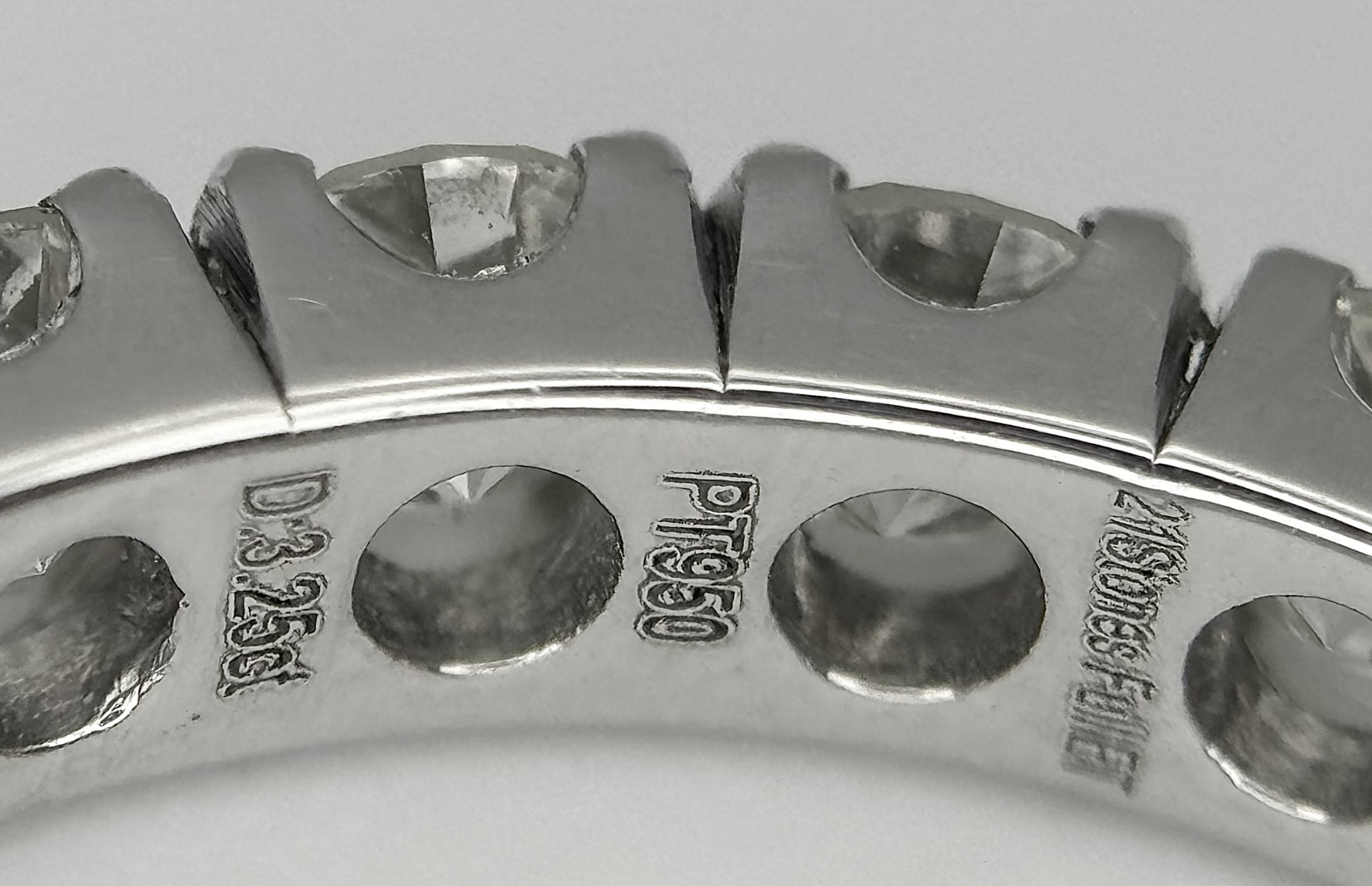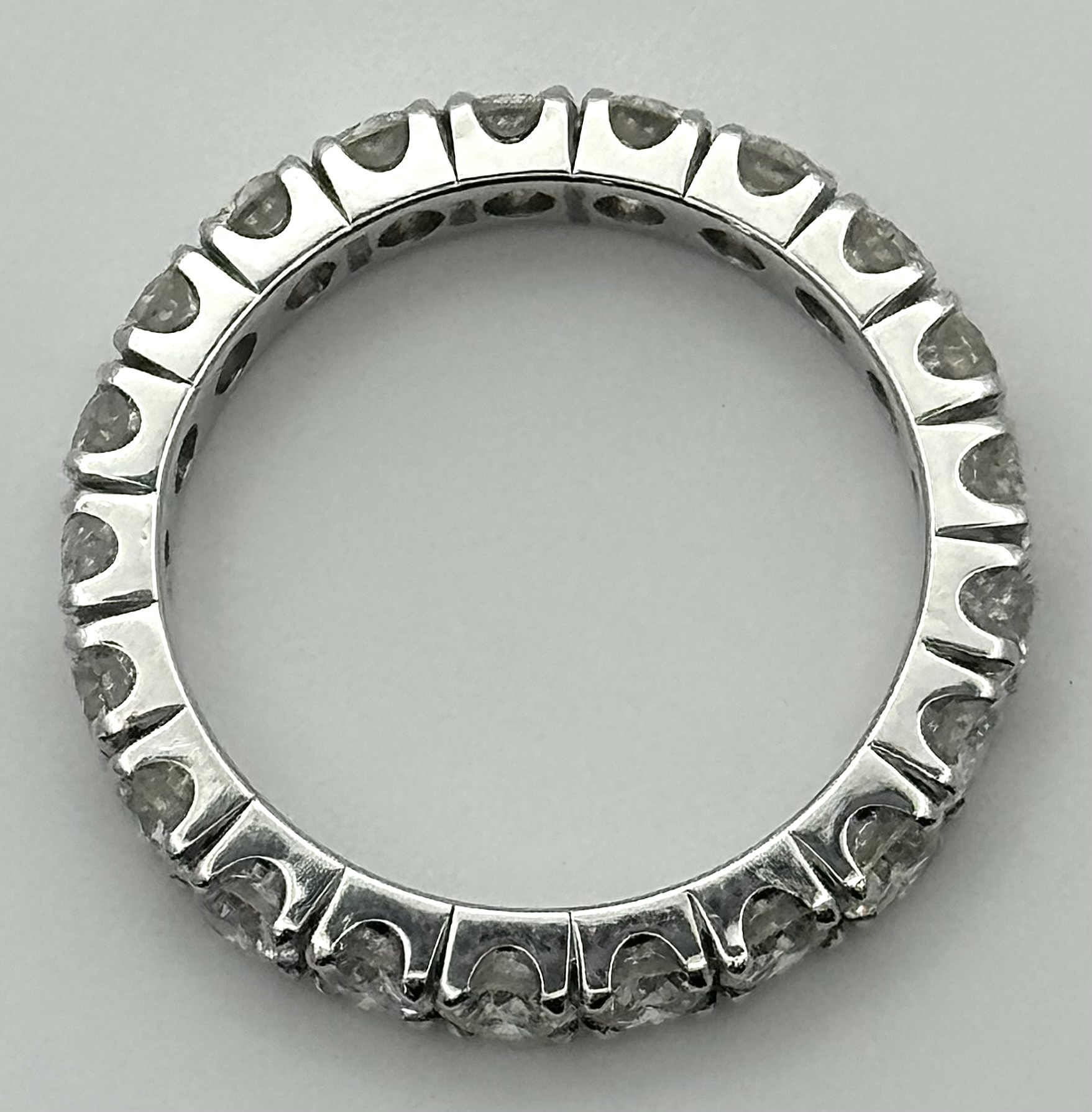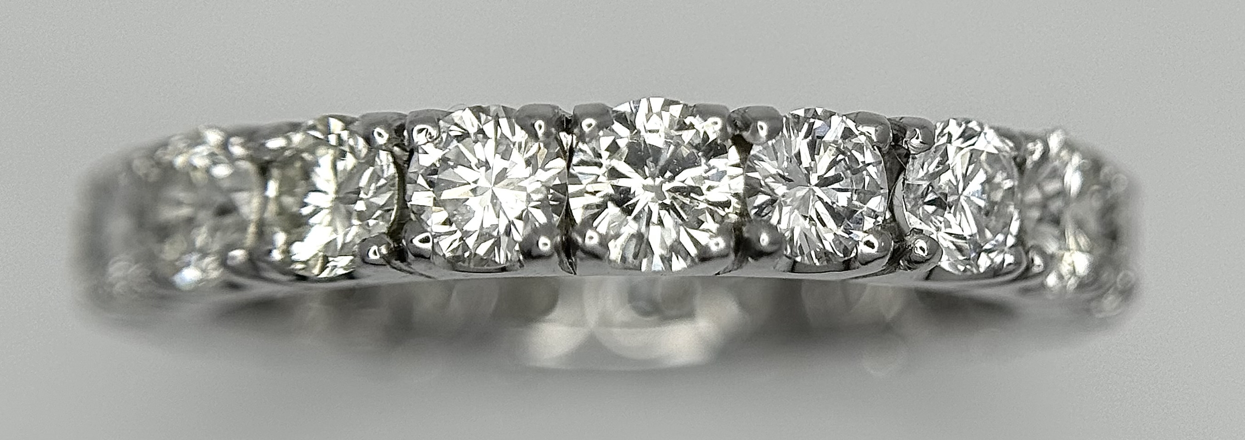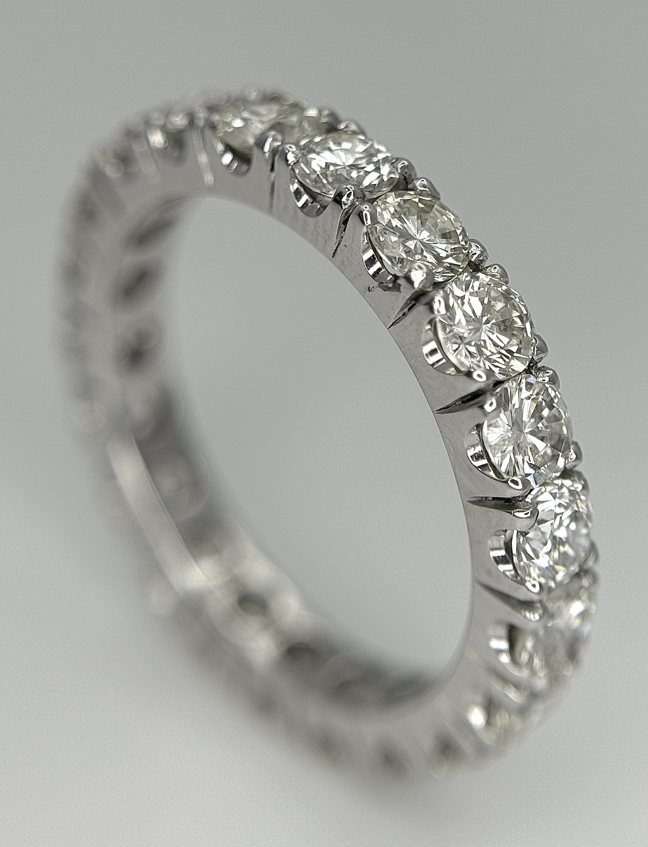 A 950 Platinum Diamond Eternity Ring. 21 round brilliant cut diamonds - 3.25ctw. VS1/2 clarity. G-H colour. Size Q 1/2. 5.8g. ref mt21
