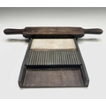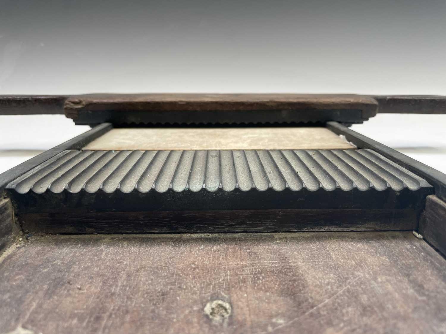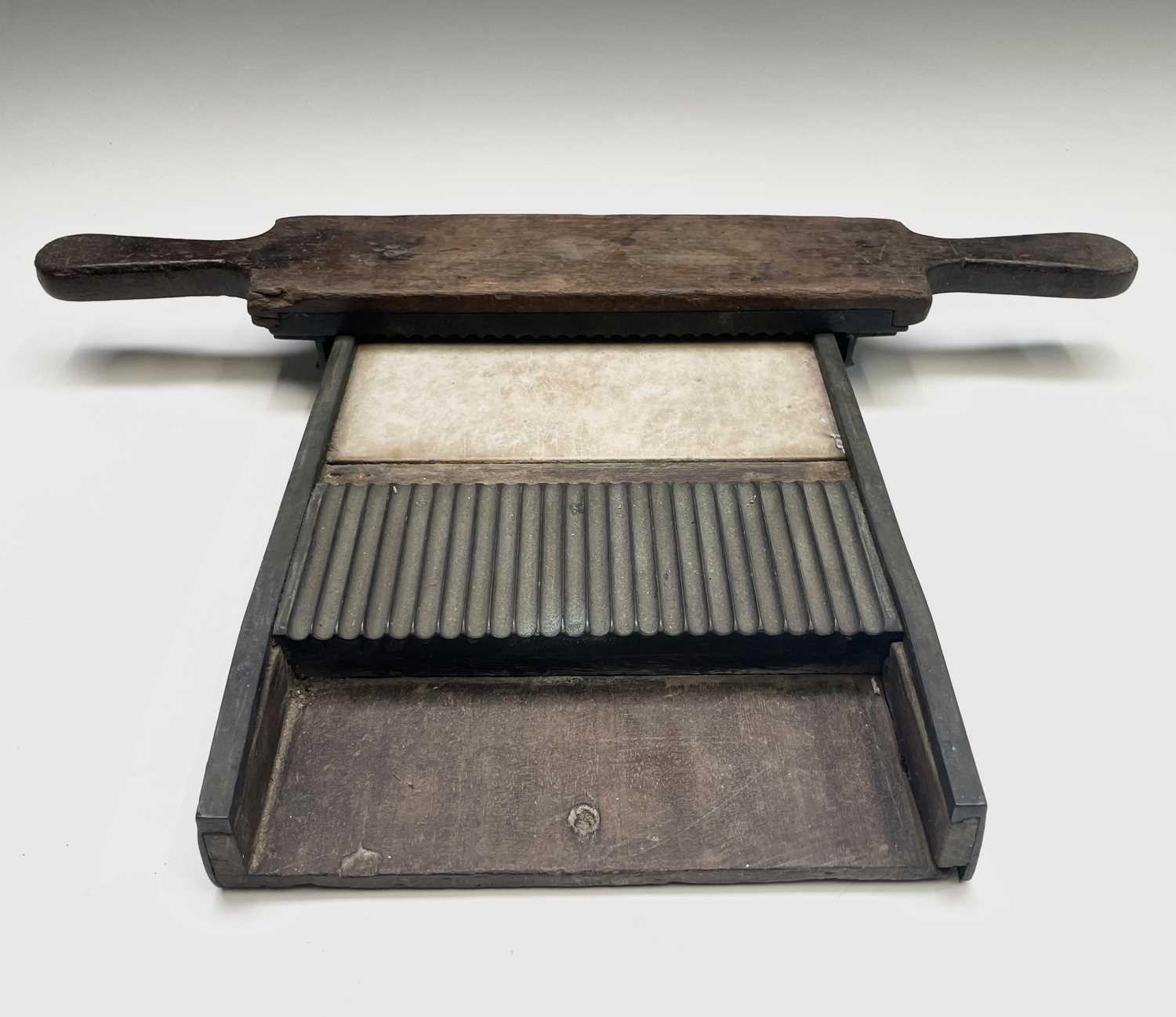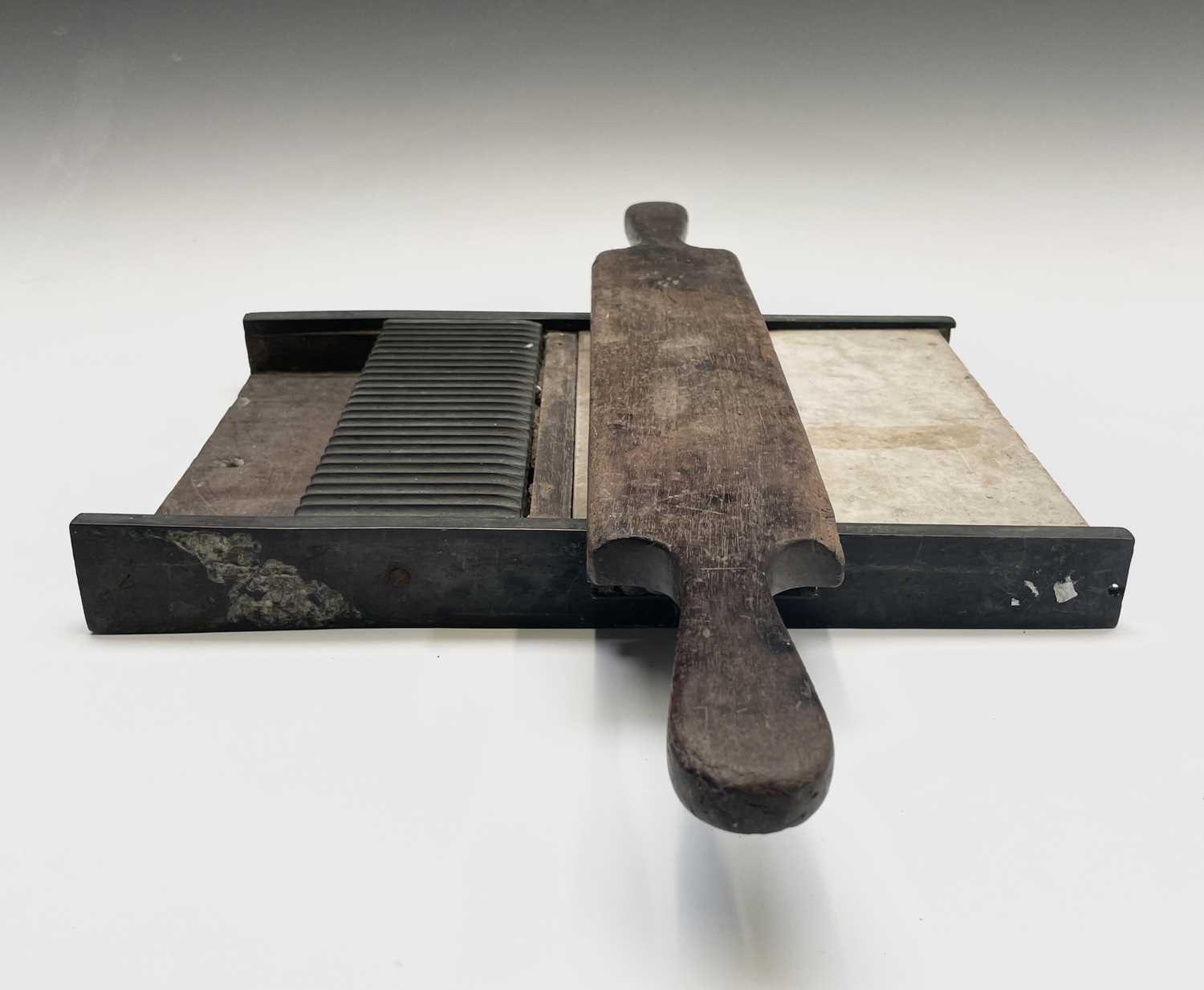 A Victorian apothecaries mahogany and brass pill roller, length 33.5cm. Provenance: Michael Trethewey. A Gentleman of Taste. We are delighted to be selling in this sale and over forthcoming sales, items from the estate of the collector Michael Trethewey. Michael had an unerring eye for quality. He was a frequent visitor to these auction rooms, an elegantly dressed, unassuming man who bought well and had a singular passion for old-school antiques.
