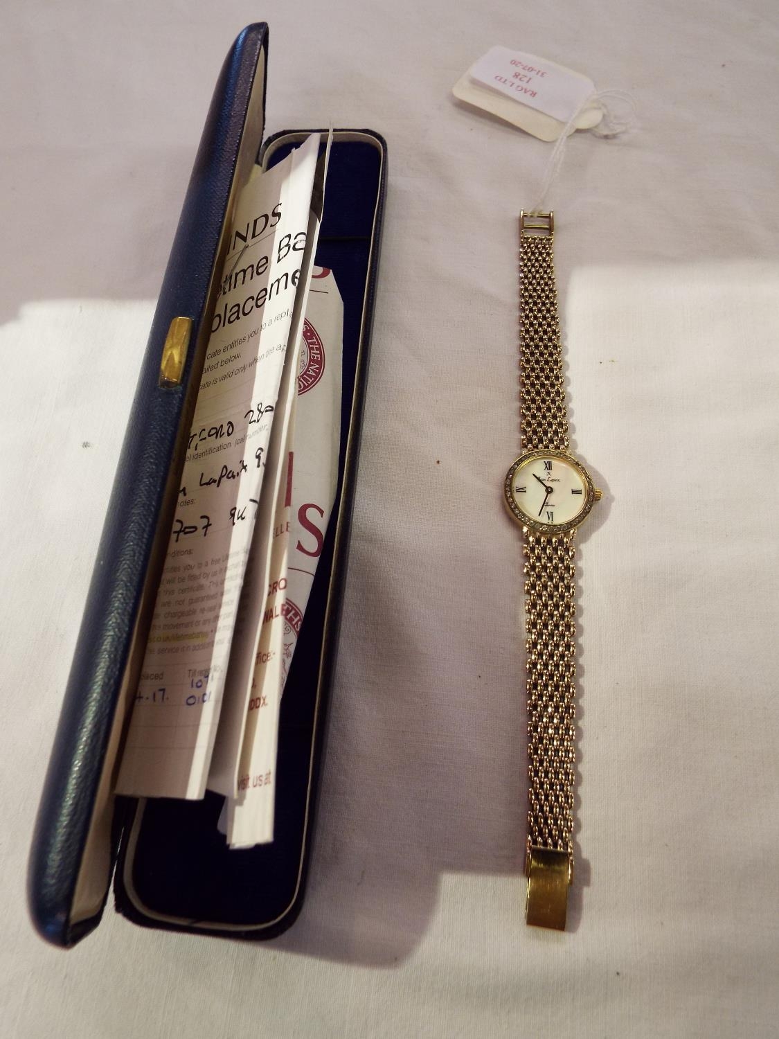 A 9ct gold Jean Lapaix diamond set ladies cocktail wristwatch, mother of pearl dial with Roman numerals - 3, 6, 9 and 12, the bezel set with diamonds on a 9ct gold integral 9ct gold brick link bracelet 24.4g