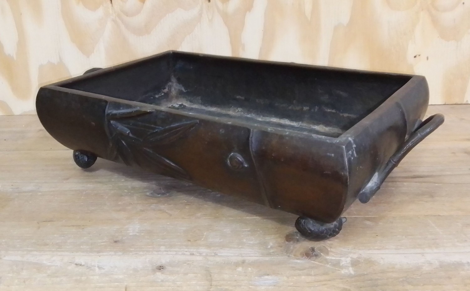 A Japanese 19th century bronze twin handled planter, four character seal to base, length 47.5cm.