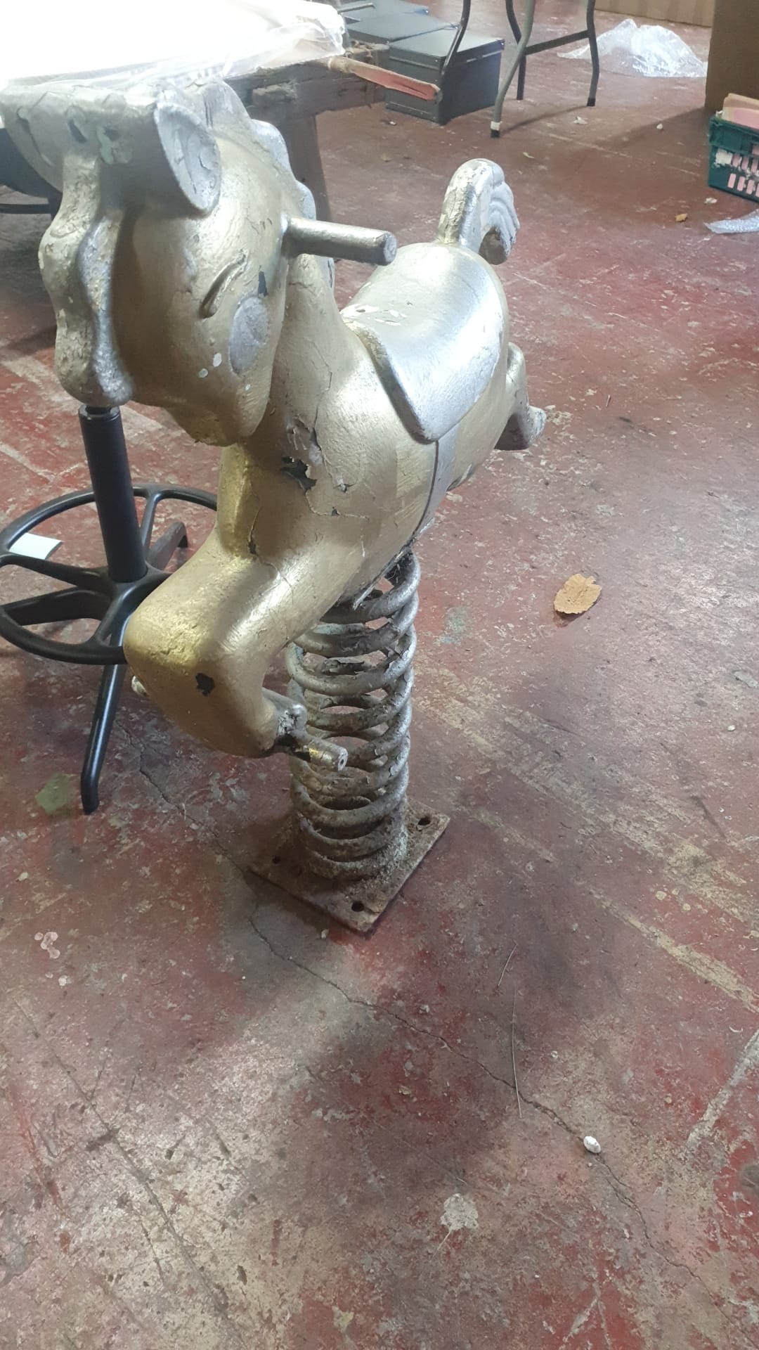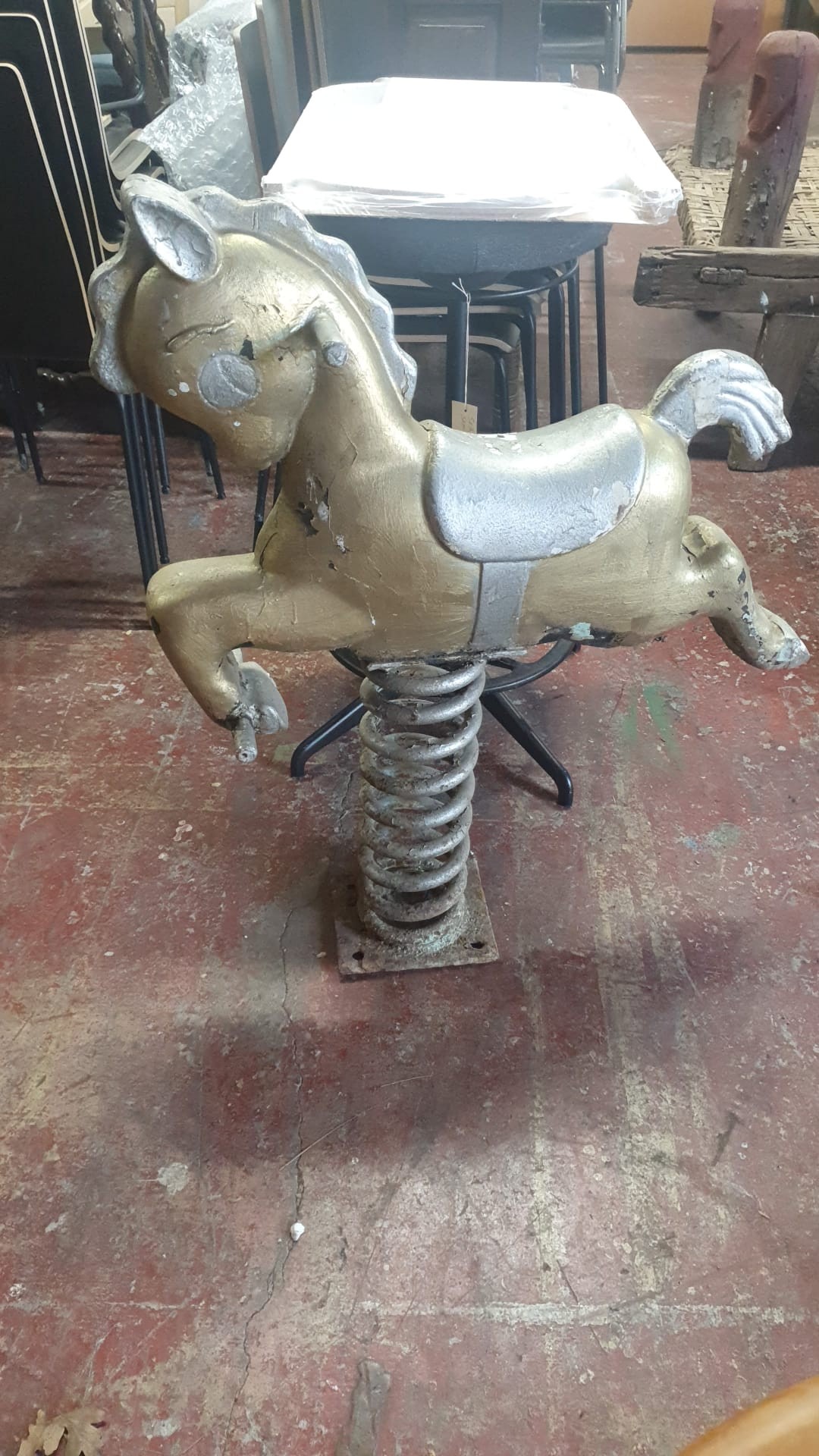 1950s Old Spring based rocking horse, Secures with 4 bolts. Nice piece.