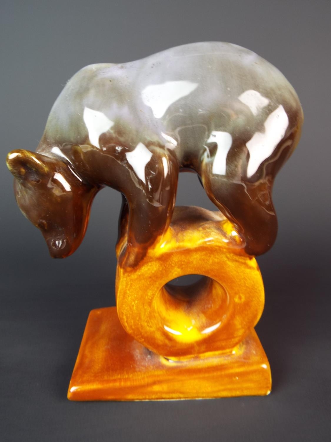 Russian Konakovo balancing Bear figurine. Makers mark to base. 5.5 inches tall.