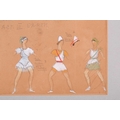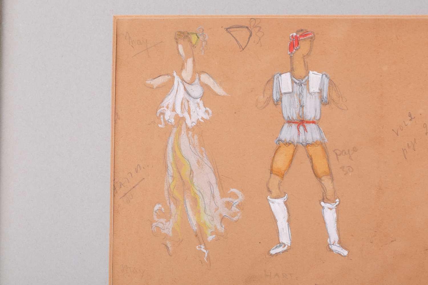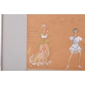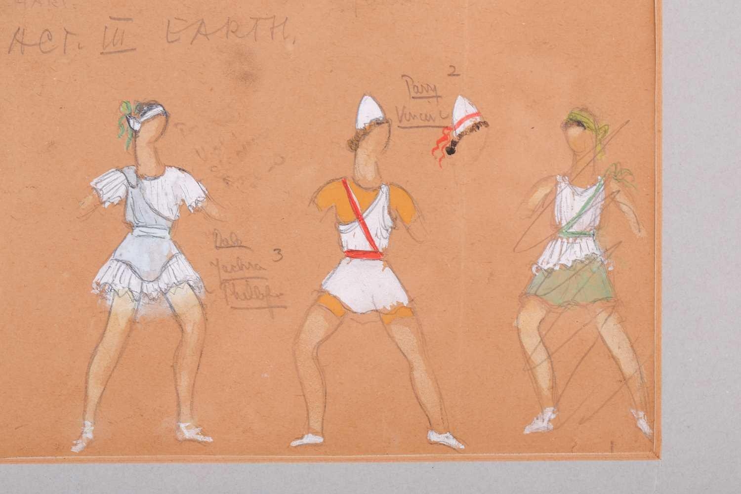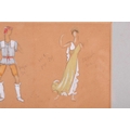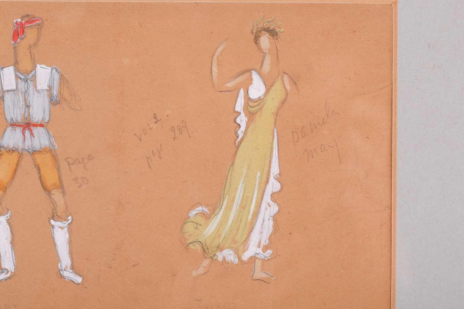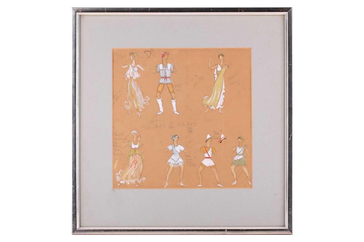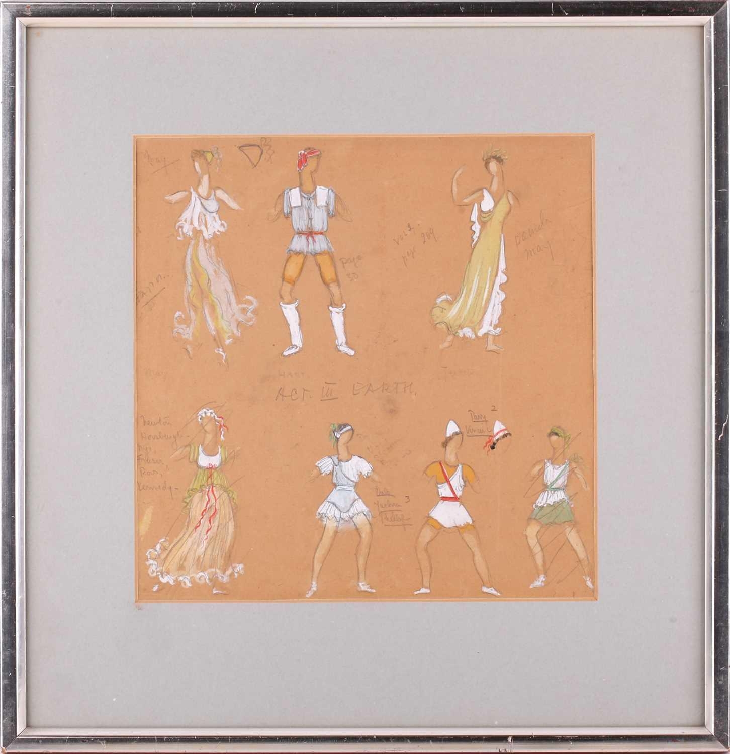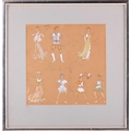 20th Century British School, Costume designs for the opera Orpheus and Eurydice by Gluck, Act III Earth, the Classical designs with the names of the artists in pencil (Pamela May, Newton, Horsburgh, Ross, Kennedy and others), unsigned, pencil and bodycolour, 25 x 25 cm, framed and glazed 41 x 40 cm