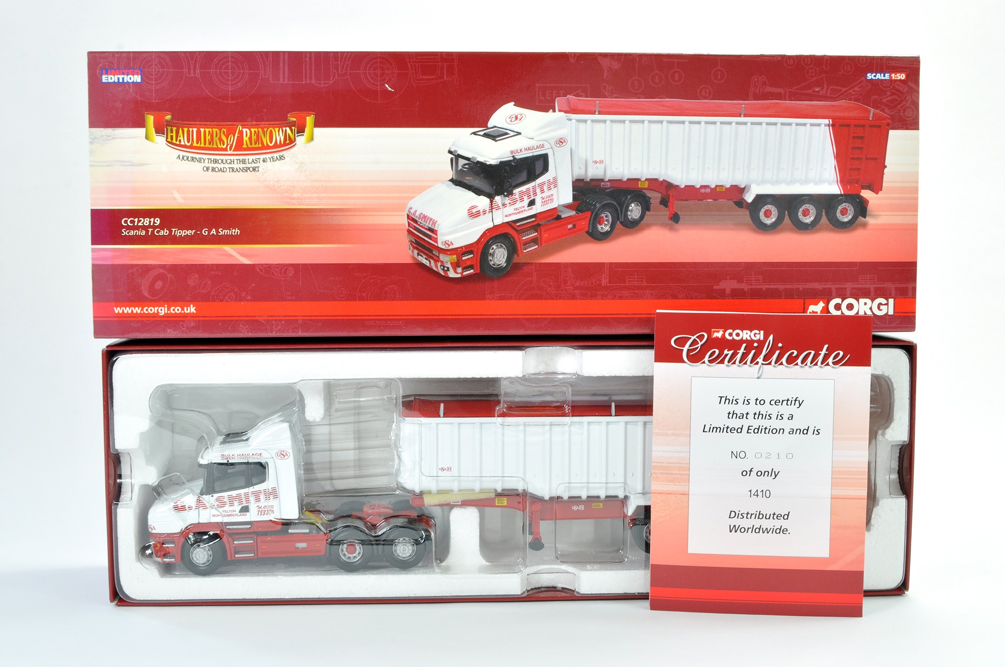 Corgi Diecast Model Truck issue comprising No. CC12819 Scania T Cab in the livery of G A Smith. Appears very good with mirrors and certificate, likely displayed so possibly some light cosmetic wear in places.