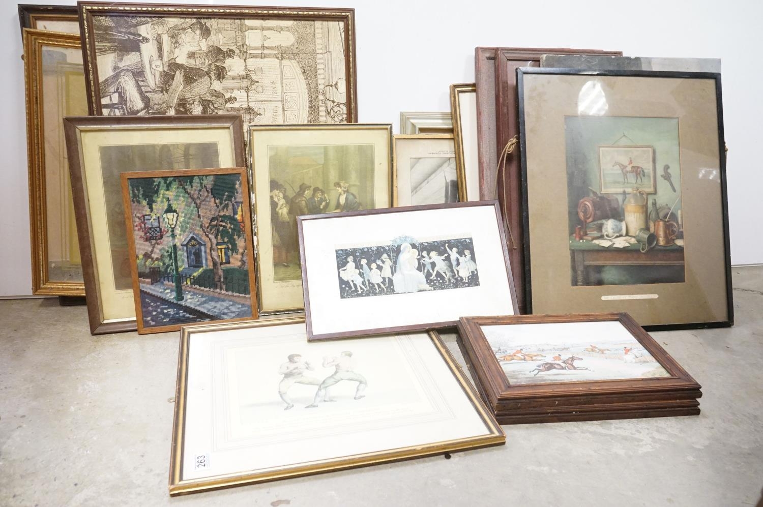 Collection of approximately Sixteen Pictures and Prints including a Pair of After C R Ryley Boxing Engravings titled ‘ Daniel Mendoza & Richard Humphreys ‘ and ‘ Randall & Belasco ‘, etc