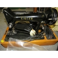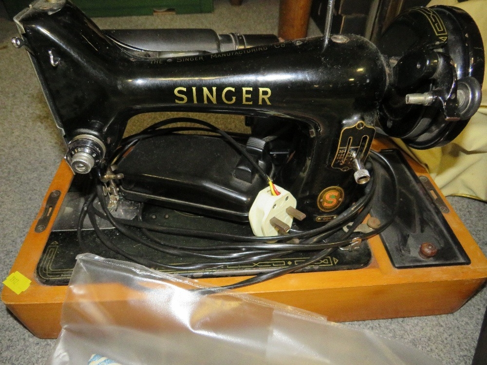 A vintage electric Singer sewing machine together with a tra...