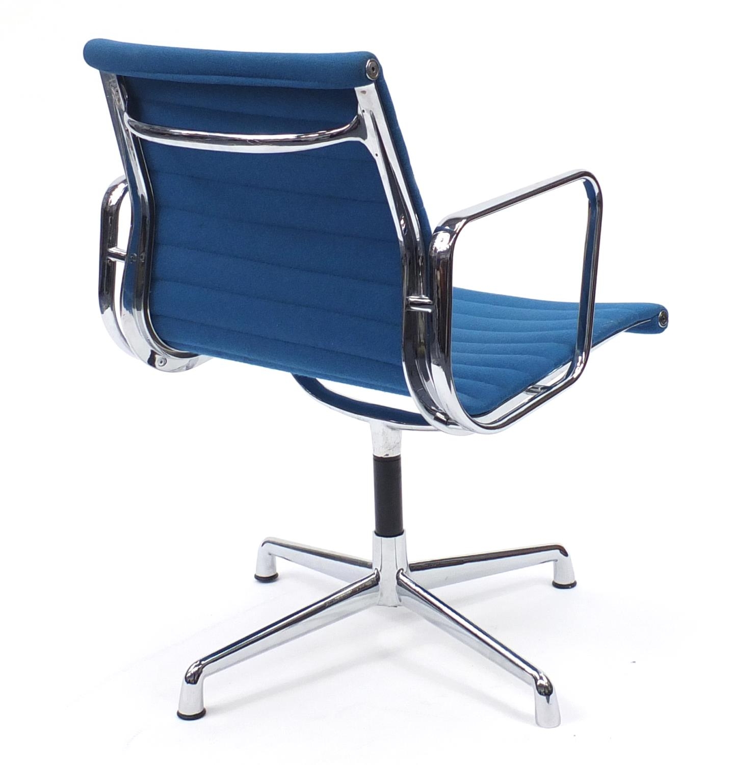 Charles and Ray Eames EA107 design desk chair with turquoise upholstery, 82cm high