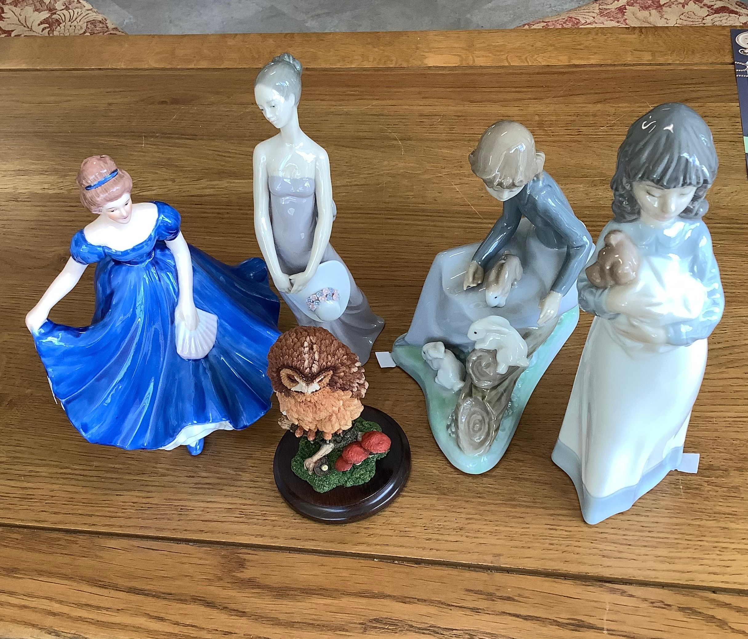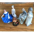 A collection of Nao, Lladro and Royal Doulton resin figures x 5.
