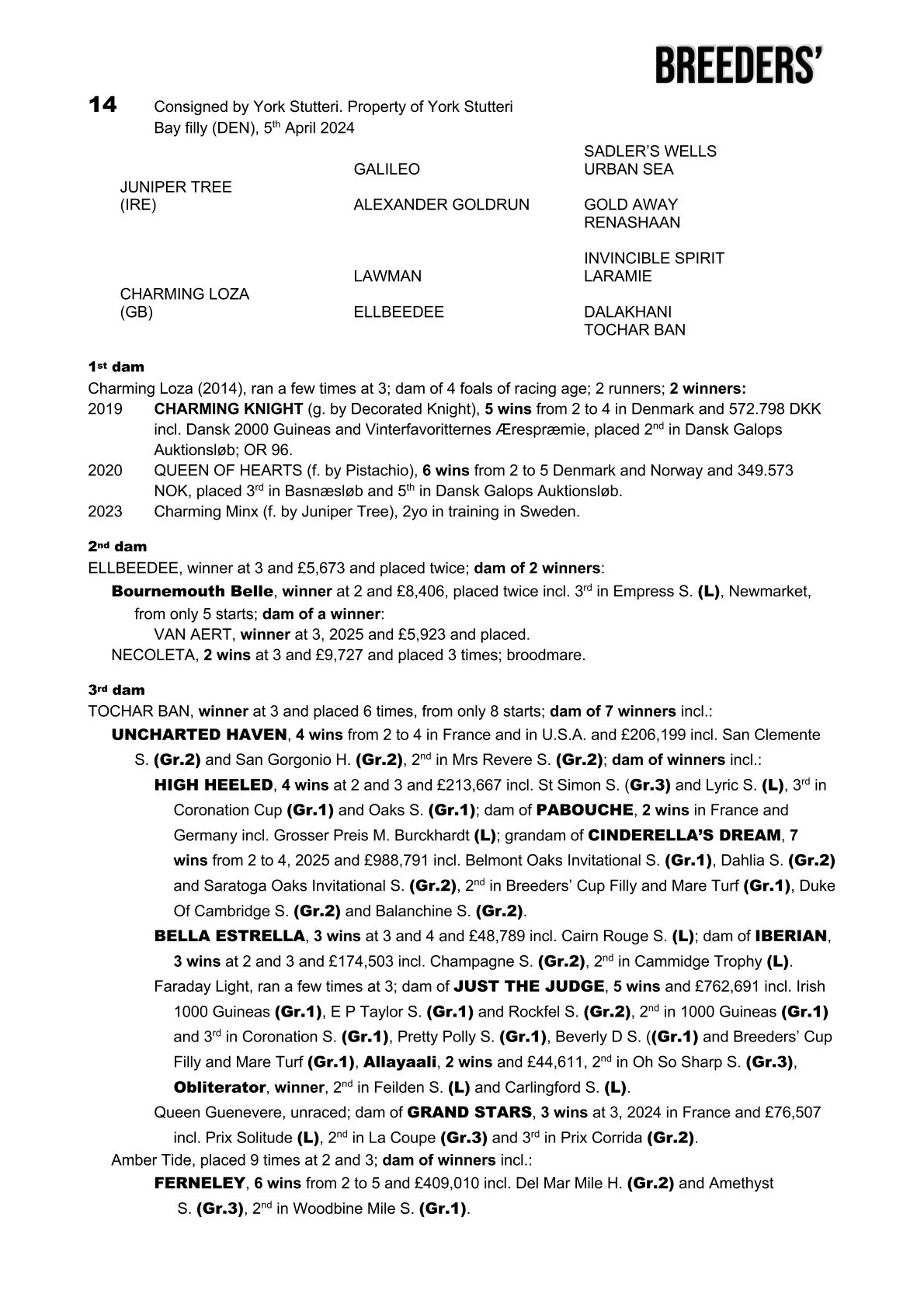 NN, bay filly (DEN) Juniper Tree - Charming Loza (Lawman)