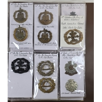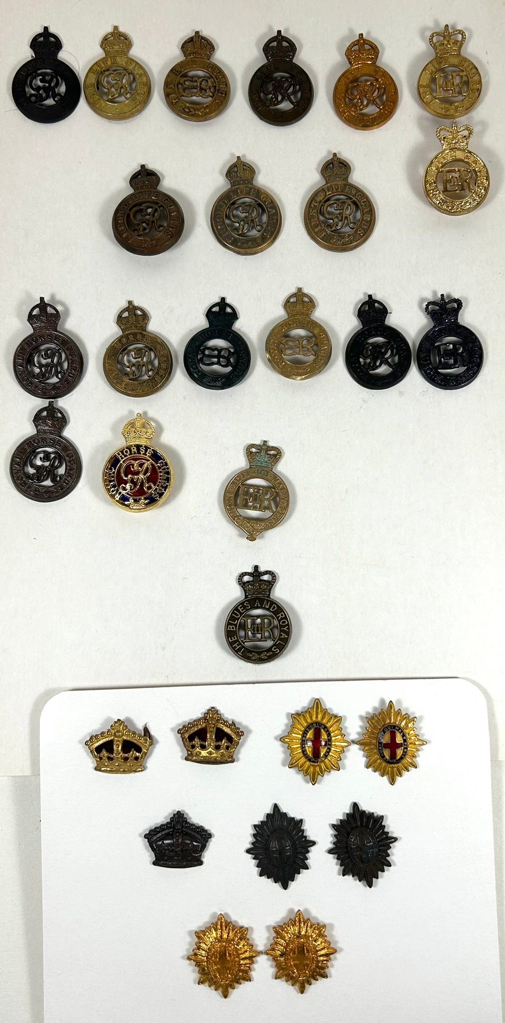 Twenty mostly restrike Life Guards, Horse Guards and Household Cavalry cap badges; including officer's bronze and museum copy gilt and enamel Royal Horse Guards. As New Condition, ex manufacturer's stock.