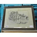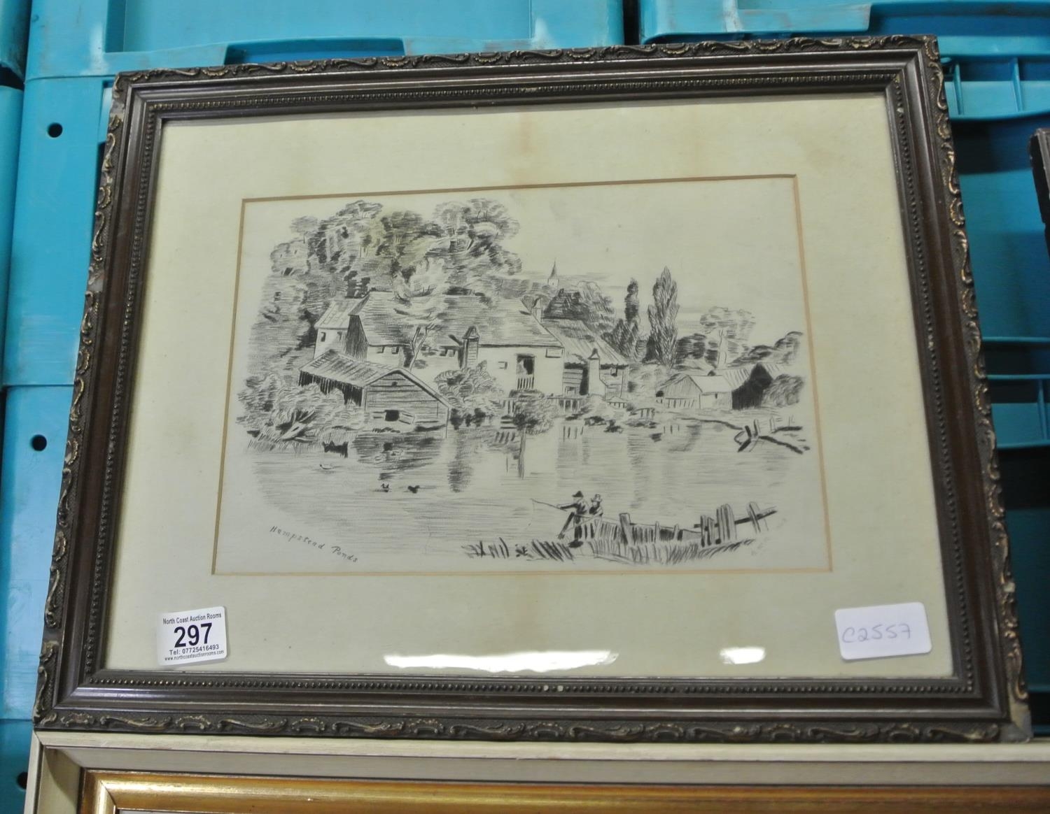 A framed antique drawing titled, 'Hampstead Ponds', signed by the artist 'S.McM. 1903'.