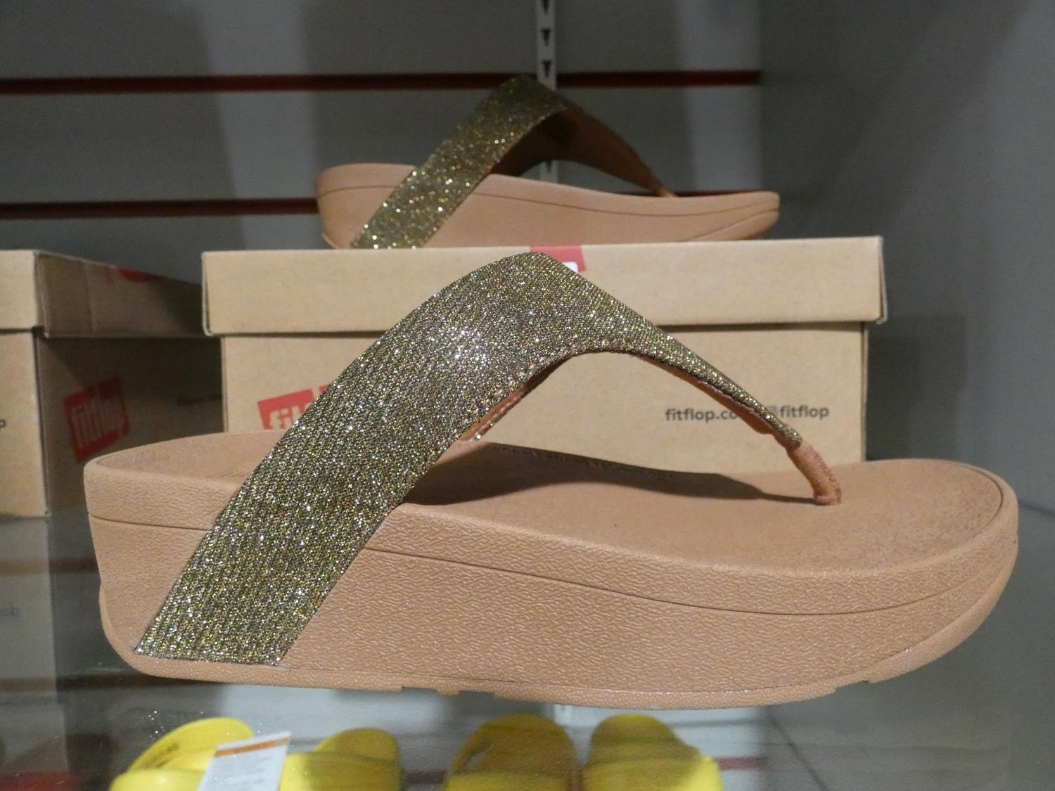 A pair of gold glitter flip flops - size UK 3 * This lot is ...