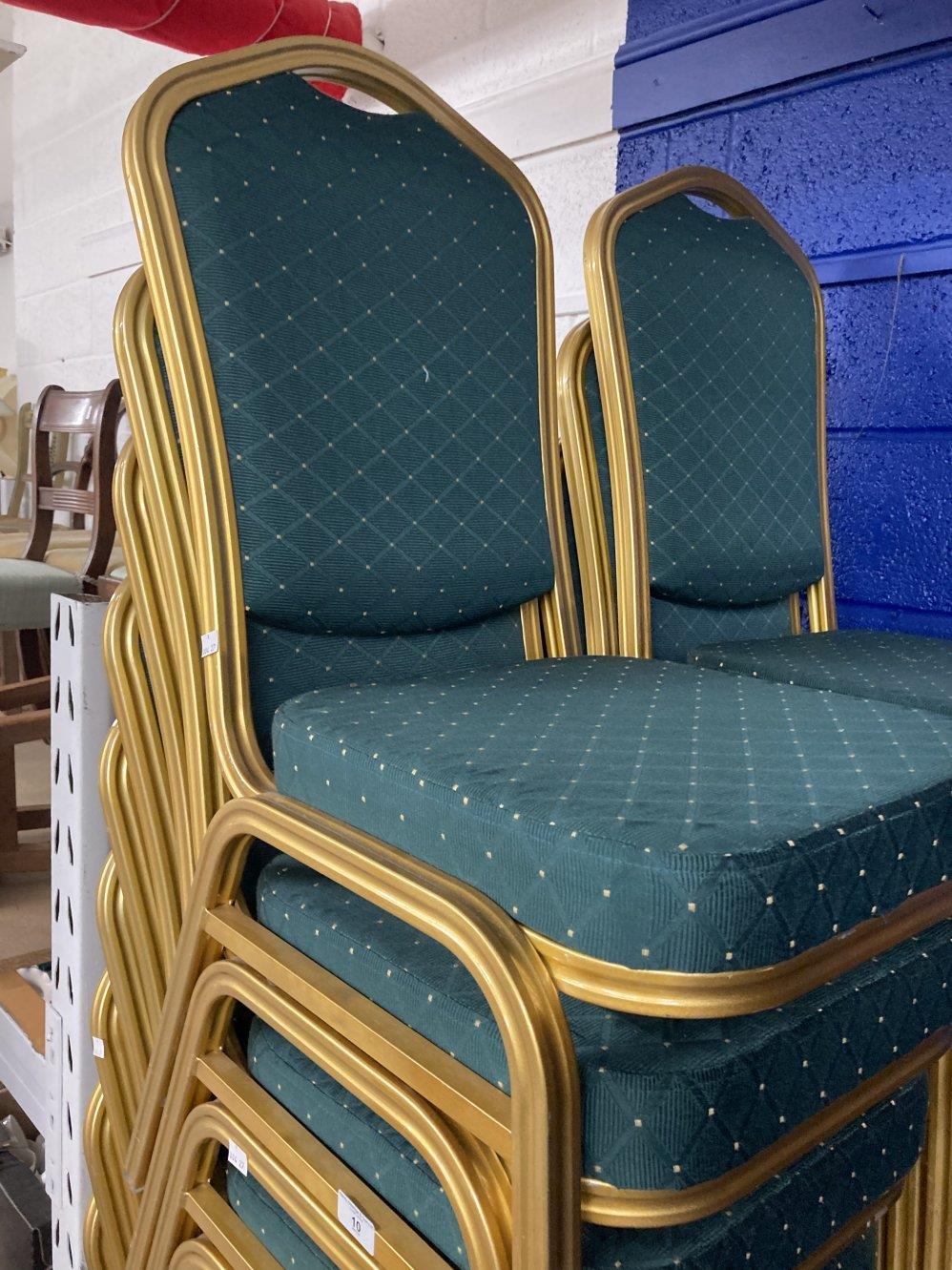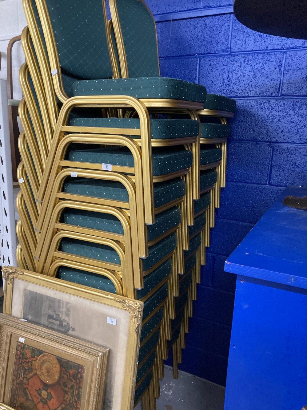 Late 20th cent. Metal framed solid back, soft seat stacking chairs. Ideal for conference meetings, gatherings, etc. Twenty-six in total. (26)