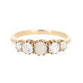 Antique Diamond Split Pearl Five-Stone Gold Ring, 2.6g