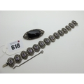 An Art Deco Style Marcasite Set Panel Bracelet, with oval collet set highlights, to snap clasp (approximately 19cm long); together with a modern Art Deco style marcasite set brooch. (2)