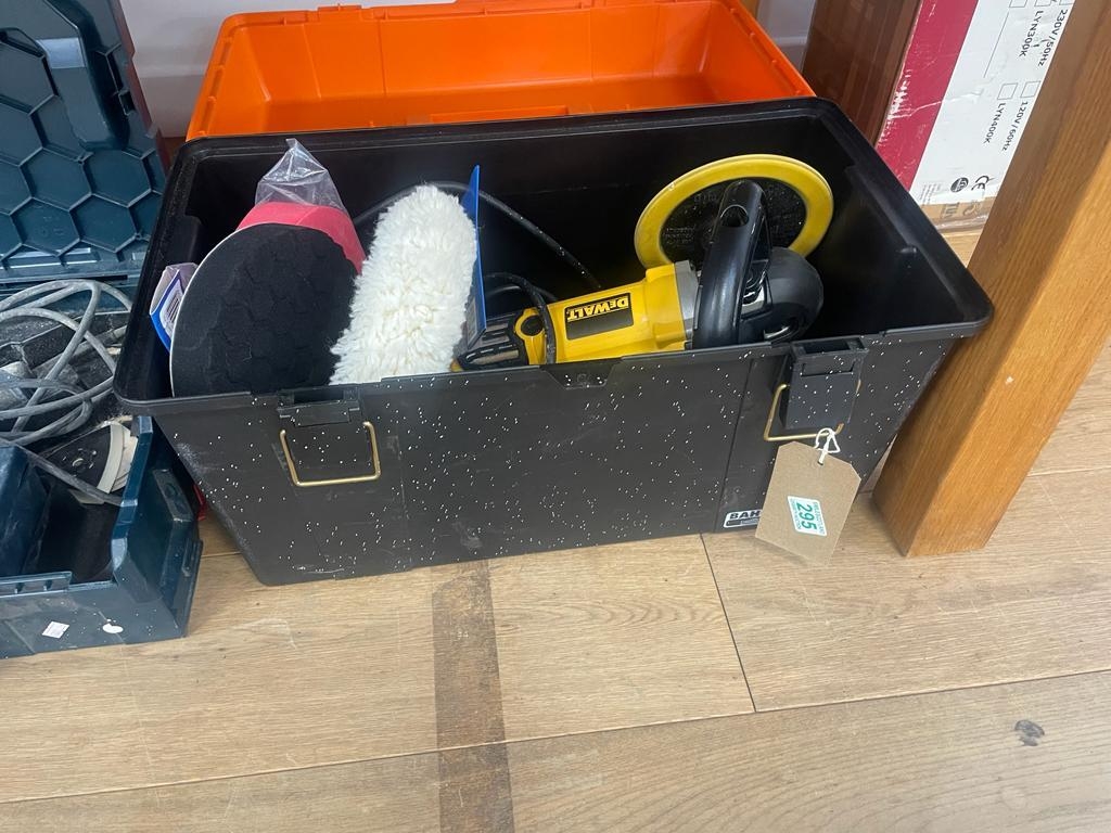 Tool box, De Walt polisher/sander, etc