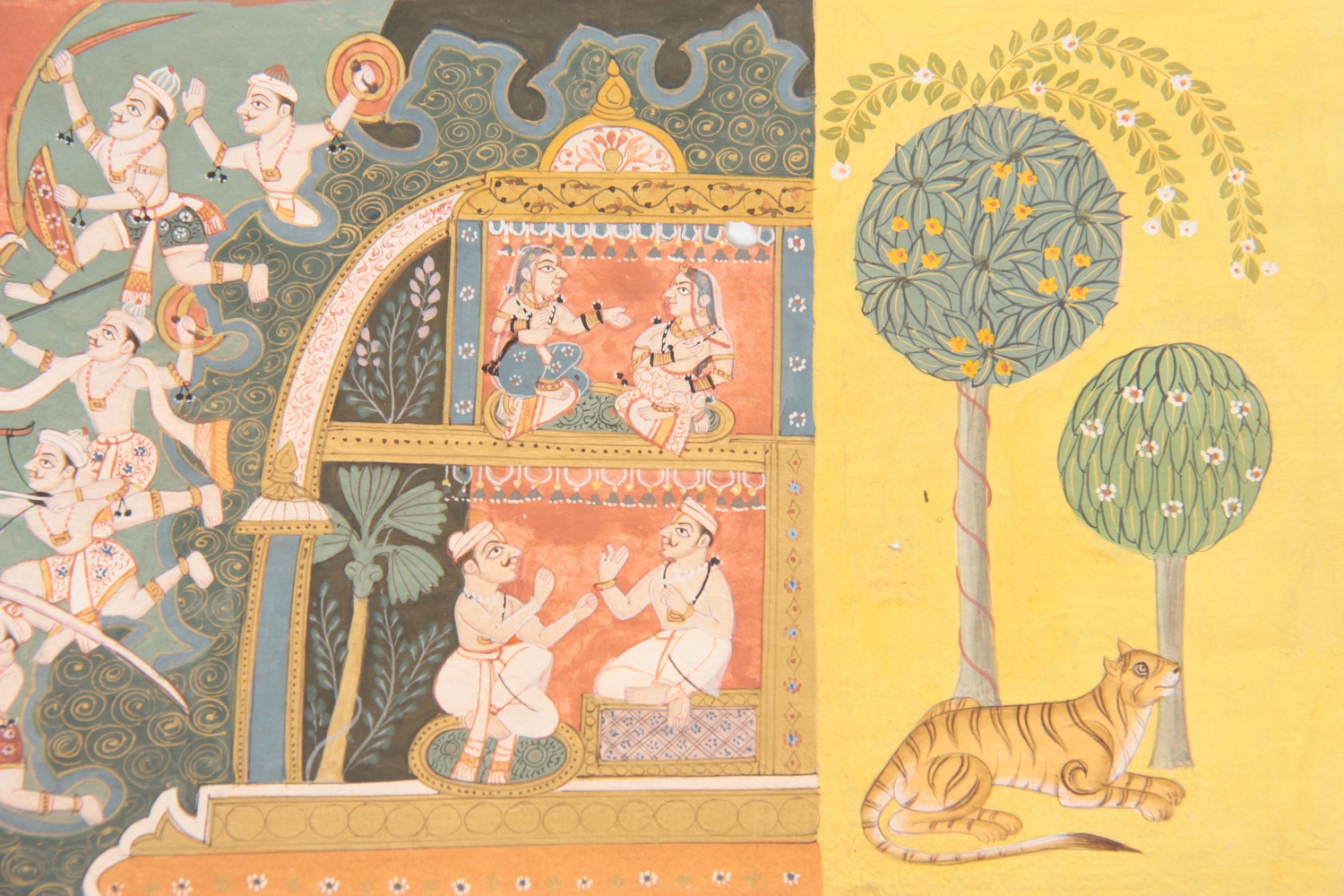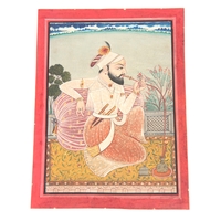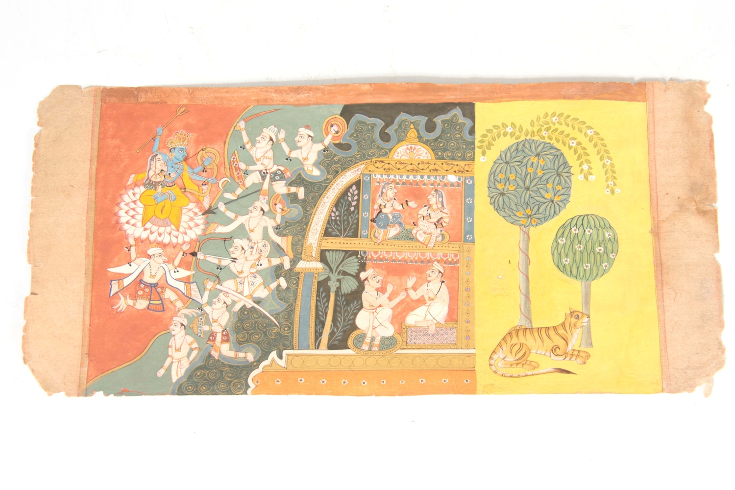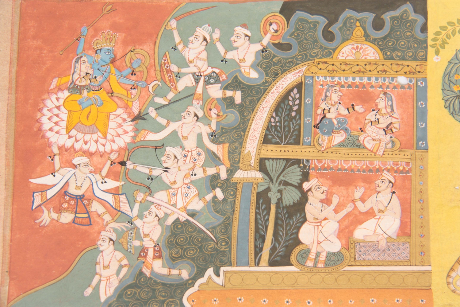19TH CENTURY WATERCOLOUR - UDAIPUR SCHOOL depicting blue deity, Krishna 15cm high 26.5cm wide - unframed