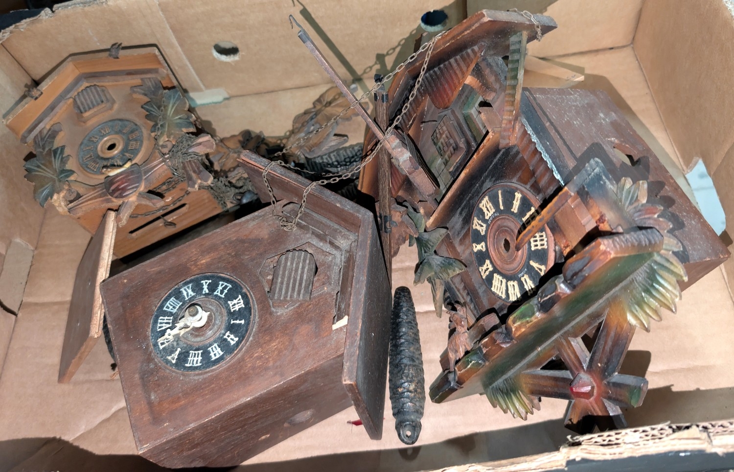 Three various vintage cuckoo clocks.